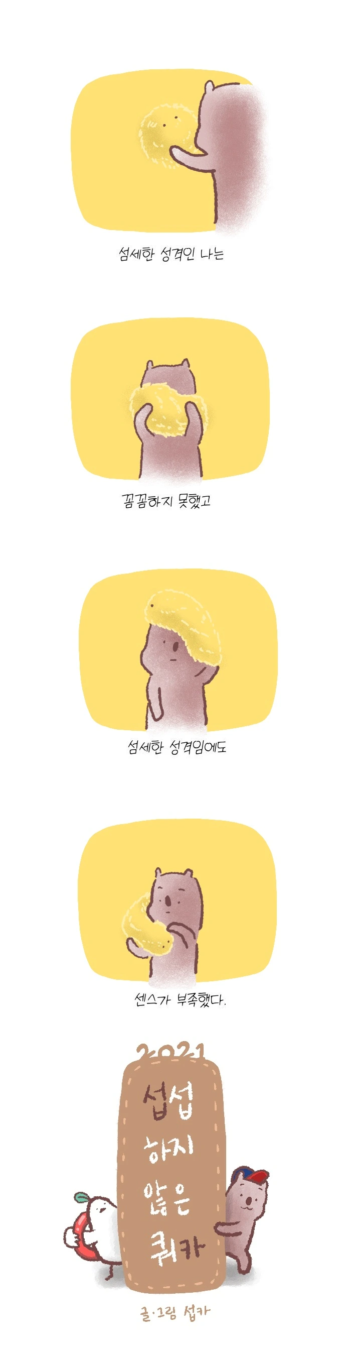<섭섭하지 않은 쿼카>그림일기 웹툰 작가이자 운동을 좋아하는 일러스트레이터입니다. 따뜻한 그림을 그리고 싶습니다. 작가님의 글에 따뜻함을 더하고 싶으신분들은 제안해주세요.