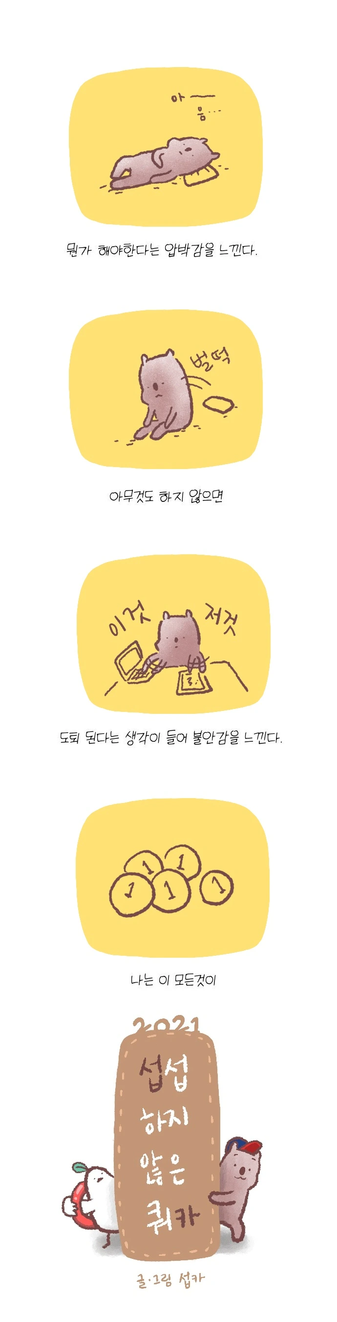 <섭섭하지 않은 쿼카>그림일기 웹툰 작가이자 운동을 좋아하는 일러스트레이터입니다. 따뜻한 그림을 그리고 싶습니다. 작가님의 글에 따뜻함을 더하고 싶으신분들은 제안해주세요.