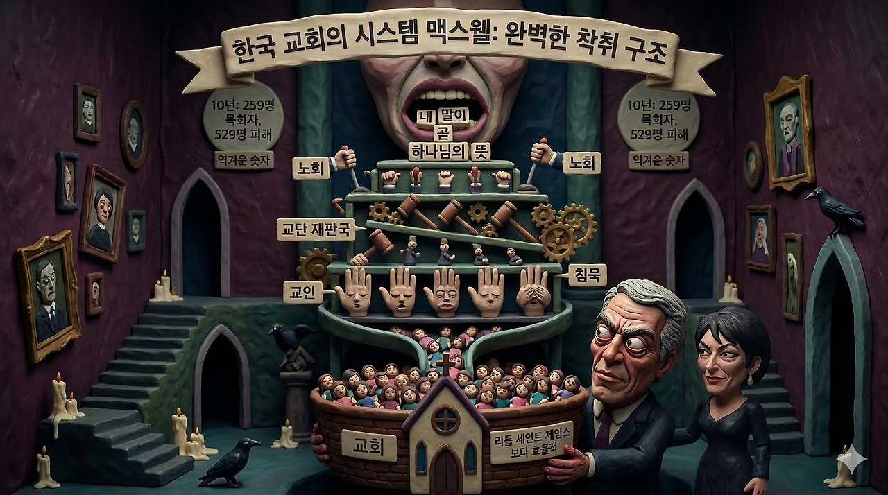한국교회에는 엡스타인이 없다. 한 명의 거대한 악인 대신, 구조가 악인을 양산한다. 위계가 입을 틀어막고, 거룩함이 범죄를 위장하며, 공동체가 은폐에 동참한다. 엡스타인은 사람 이름이지만, 한국교회의 문제는 시스템에 있다. 공범 맥스웰은 감옥에서 사면을 구걸하고 있지만, 한국교회의 시스템은 사면을 구걸할 필요조차 없다. 그들을 기소조차 하지 않으니 무슨 말이 필요하겠나.