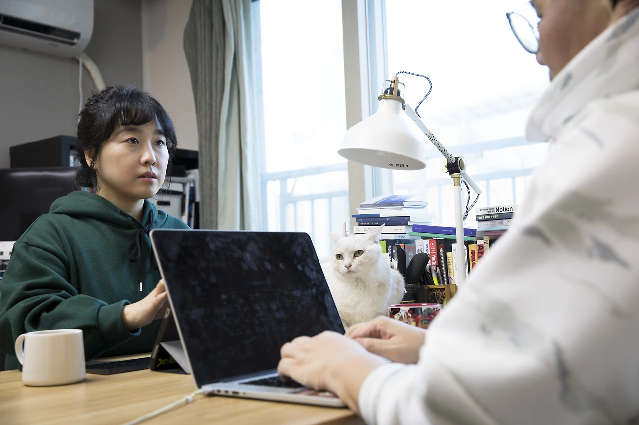 아내: 당연하게 여겨서 눈에서 지운 노동이 얼마나 많을까. 엄마하고 밥 먹을 때도 맛있는 거 사 먹자고 해야겠어. 정당한 대가를 지불한 좋은 음식을 함께 먹으면서 그동안 엄마에게 고맙고 미안했다고 전하고 싶어.