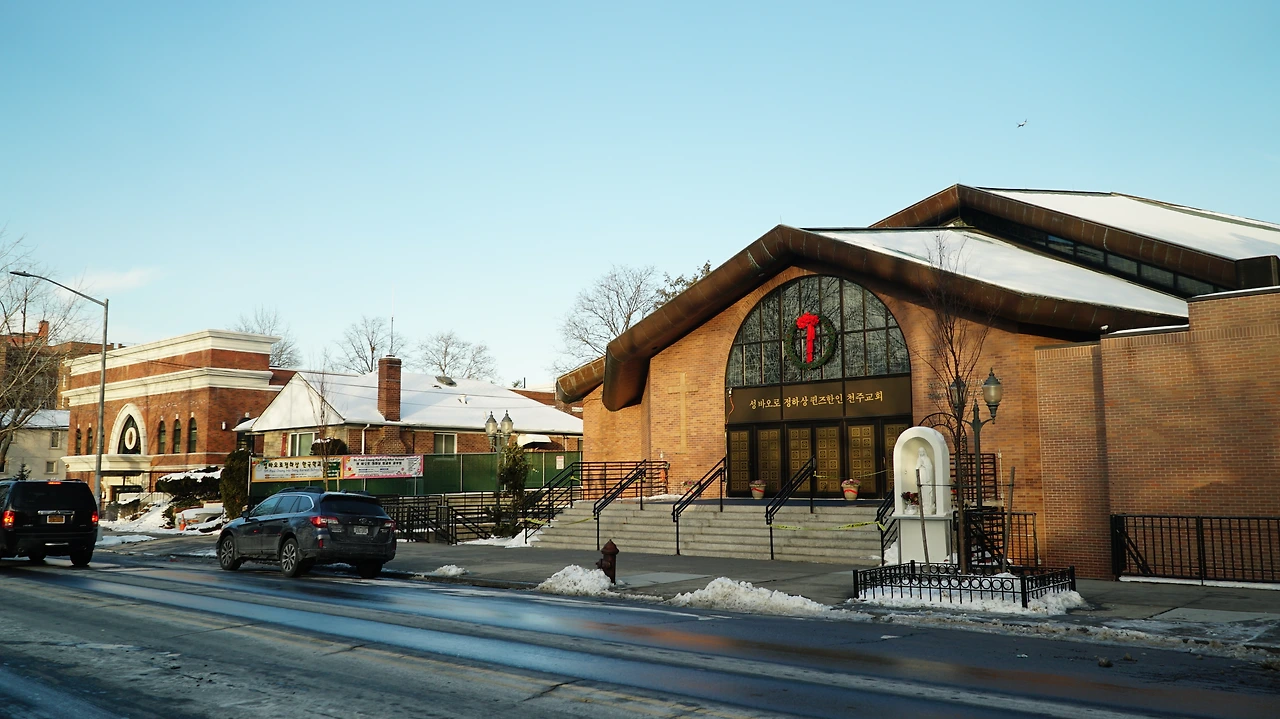 교회와 타 종교 회당이 모두 마주하거나 등 뒤에 있다. 천주교 성당 앞에 구세군 한인 교회당이 있다. 여호와의증인 회당 뒤로 이슬람 사원이 있다. 이들이 모인 거리를 따라 올라간 첫 사거리에는 큰 절도 있다. 근처에는 대표적인 장애인 선교단체 뉴욕밀알선교단이 있다. 반대 방향에는 유대교 회당과 시크교 회당이 마주하고 있다. 평화로운 시기가 아니었다면, 종교 전쟁이 일어났을 지역이다.