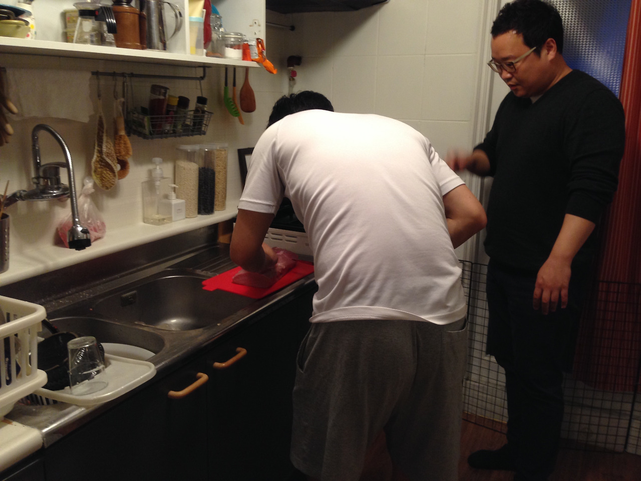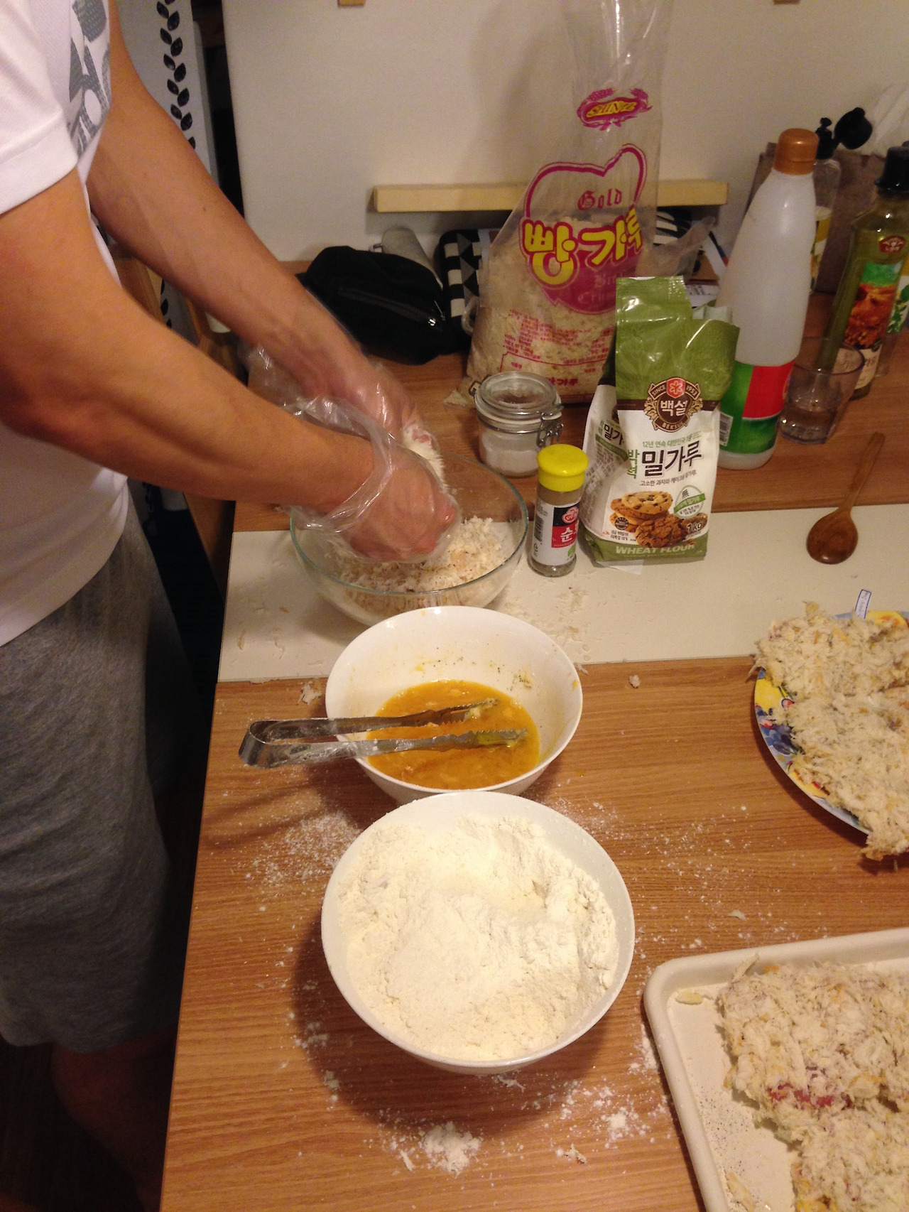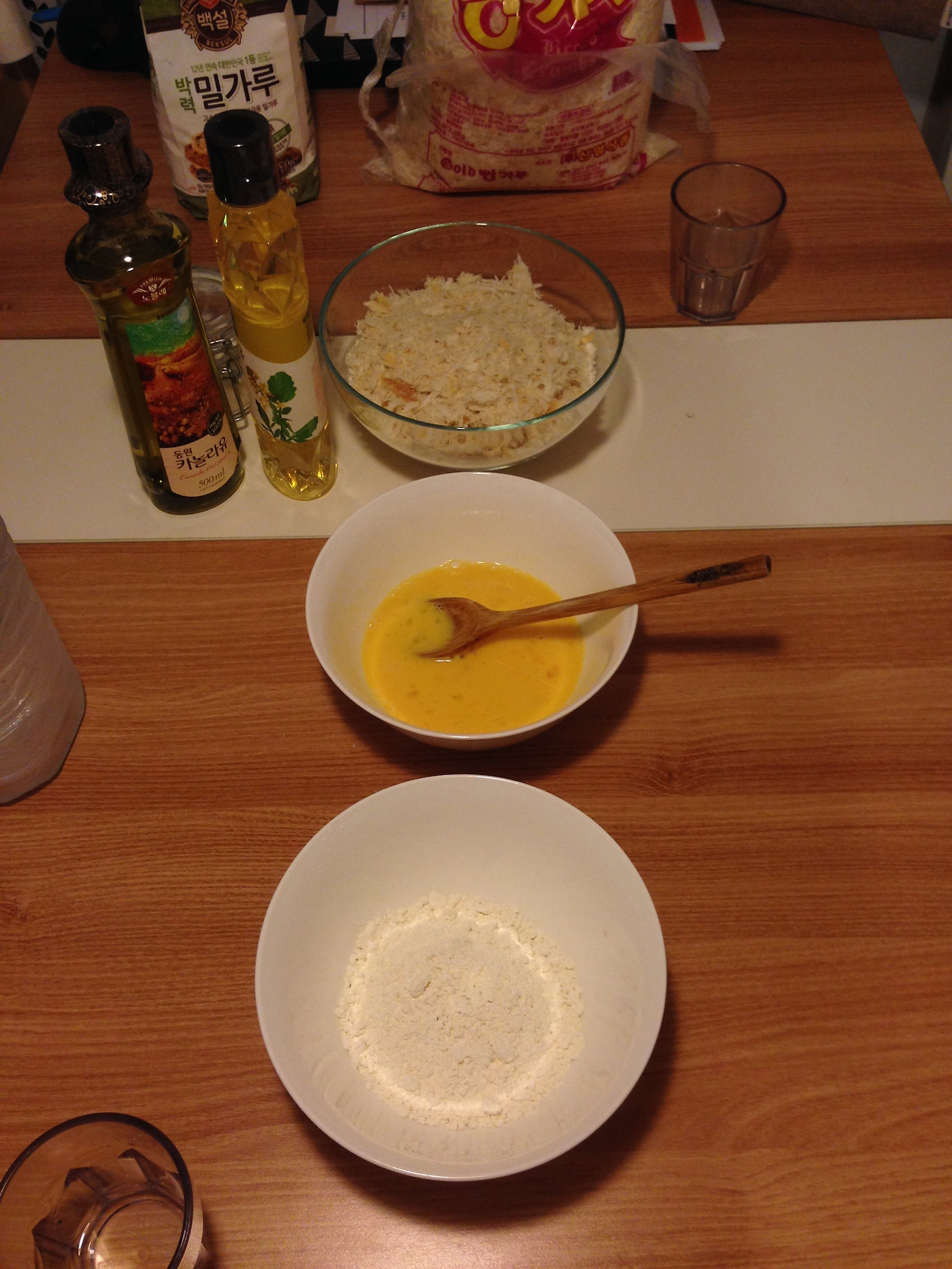 W의 친구 중에 또 한 사람은 정육 일을 오래도록 했었고 흔쾌히 돼지 등심을 직접 구해와서 손질하는 법까지 알려주었다. 이후로 집에서 돈가스를 계속 튀겨보았다. 조리대도 없는 좁은 주방에서 이리저리 비집고 앉아서 밀가루, 계란, 빵가루를 묻혀서 튀기고 또 튀겼다. 튀긴 돈가스를 둘이 다 먹지 못하니 이김에 친구들을 불러서 먹였다. 친구들은 먹으면서도 맛과 퀄리티를 잡아가는 길을 함께 고민해주었다. 고기의 밑간 정도, 튀김에 적정한 온도를 찾는 일, 튀김옷이 너무 두꺼워지지 않게 하는 일, 튀김옷이 고기와 자꾸 분리되는 일은 계속 튀기고 먹는 일을 함께 반복하며 알아나갔다.