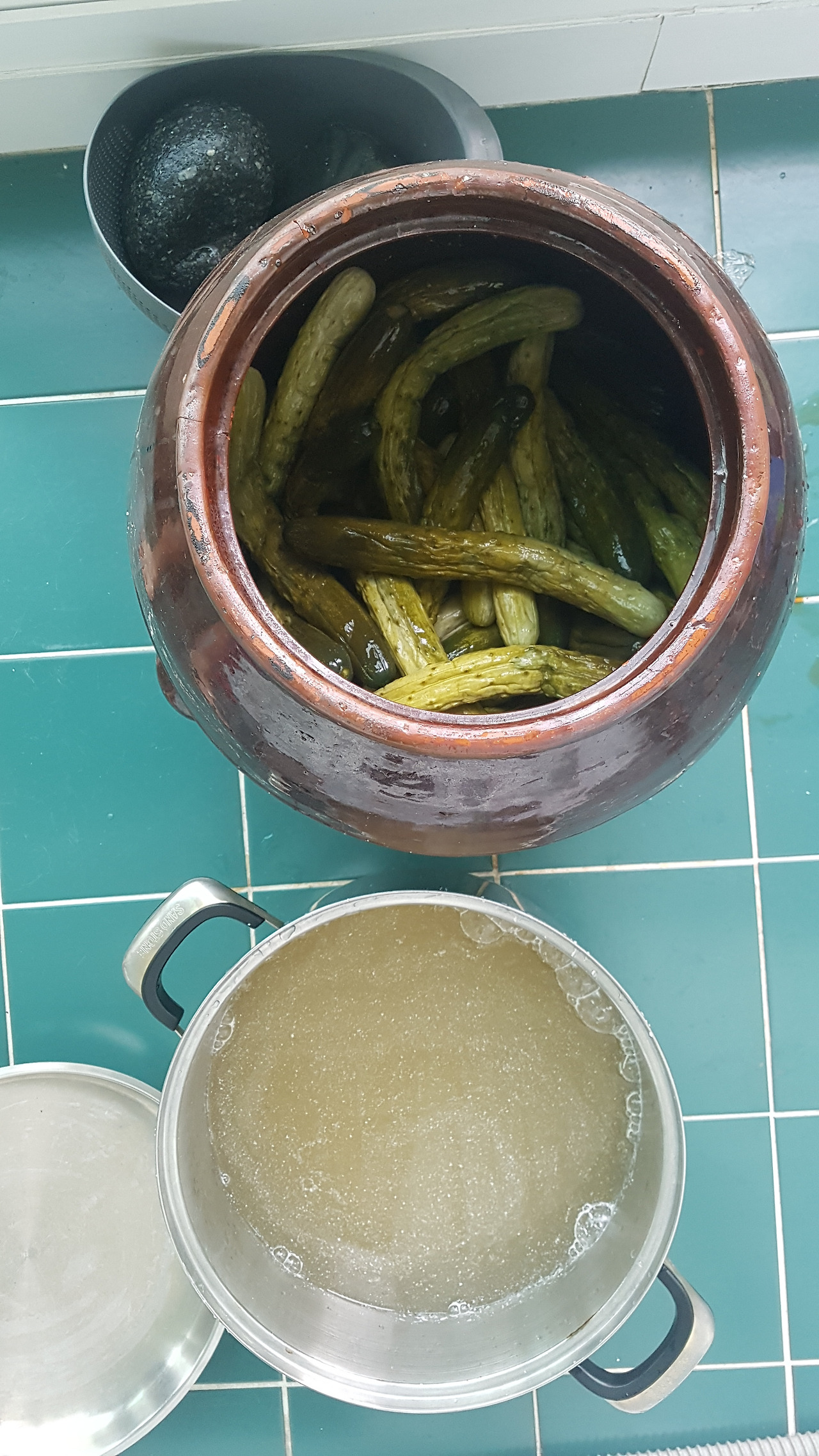 어머니가 아침에 따뜻한 밥께 함께 팔팔 끓인 국을 넣어서, 조금이라도 따뜻하게 밥과 국을 먹었으면 하는 바람이 오이장아찌가 만들어지는 과정을 보며, 지금 내가 부모님의 건강을 위해, 정성과 마음으로 준비하고는 있지 않은 건지,