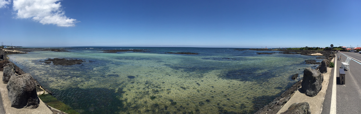 고교시절에는 없었던 북유럽 취향의 레스토랑이 서귀포 시내에 들어서 있고, 논현동 집앞에서 24시간 불 밝히고 있던 프랜차이즈 카페가 용담동 북쪽 해안절벽에 버젓이 들어앉아 있어도 어색함이 없다.