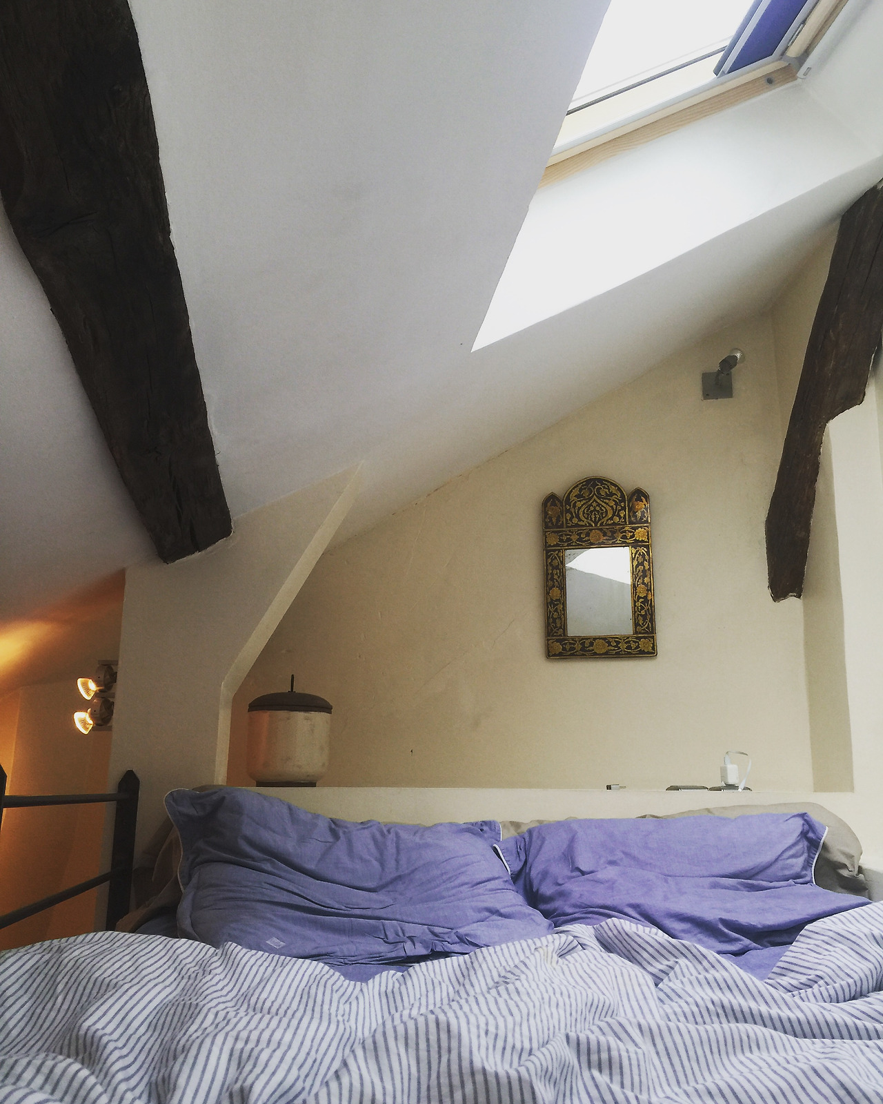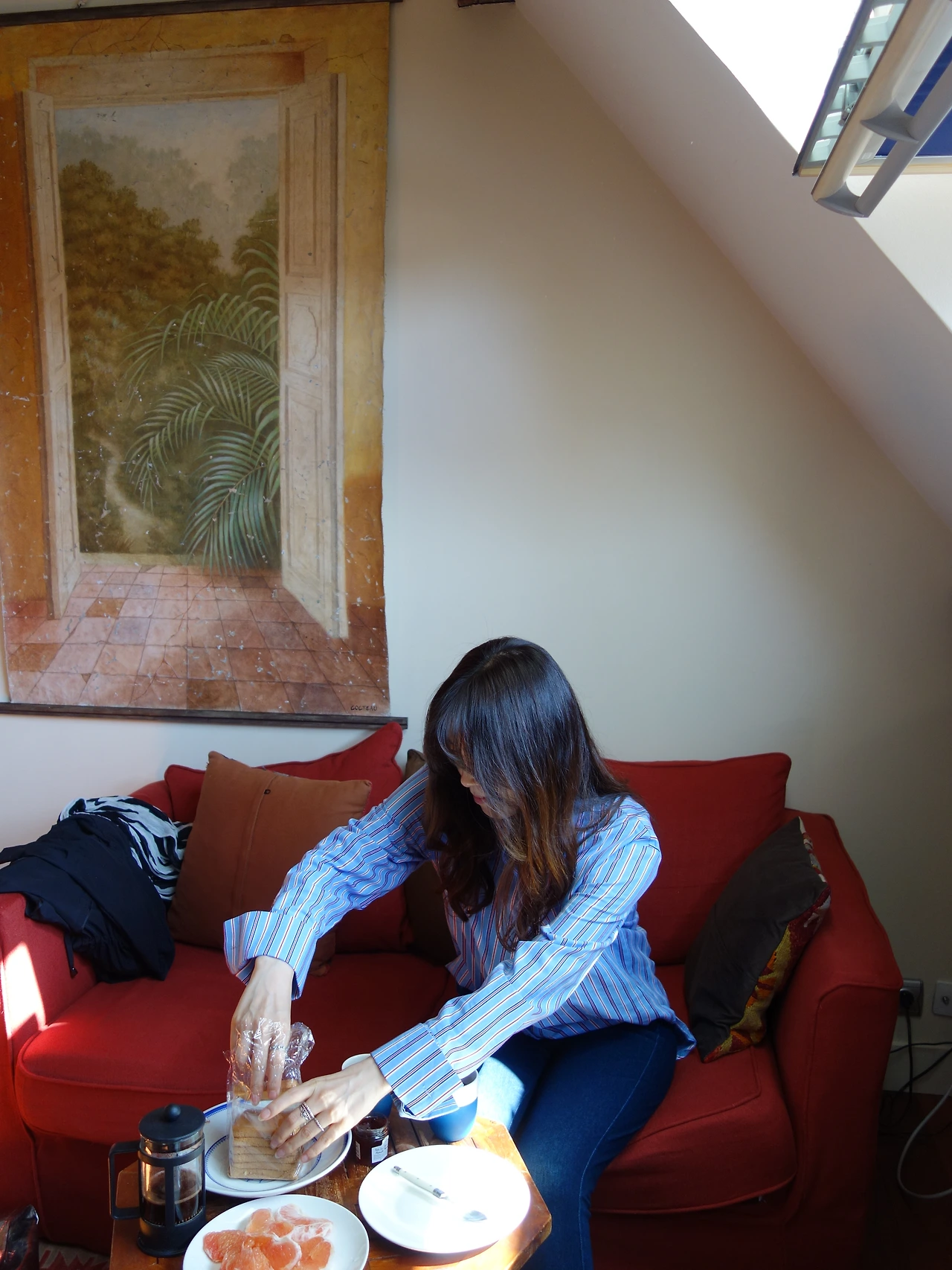 옥탑방은 좁기도 많이 좁았다. 작은 거실 위로 더블 매트리스 하나가 꼭 맞는 복층 침실이 있었고, 사람 하나가 서 있으면 완전히 가득 차는 욕실, 그리고 90년대식 소파베드 옆에 사선으로 붙어있는 창문이 있었다. 그녀에게는 티 내지 않았지만, 처음 그 집에 도착했을 때 나는 울고 싶었다. 하지만 반전 효과는 바로 다음 날부터 나타났다. 백팔배 같은 계단을 올라 집에 들어가는 순간, 그곳이 천국 같아 보이는 거다. 백팔 배 후 신을 영접하는 기분이 이런 걸까. 매트리스에 누워서 하늘을 마주하는 천창, 거실의 높은 창 너머로 보이는 이웃집 지붕의 오렌지색 굴뚝 행렬은 아름다웠다. 천창으로 떨어지는 빗소리마저도. 어딘가 비밀스럽고 조금은 애처로운, ‘파리를 사랑한 이방인’에게 가장 어울리는 집이었다. 급기야 우리는 그 옥탑방을 사랑하게 되고 말았다.