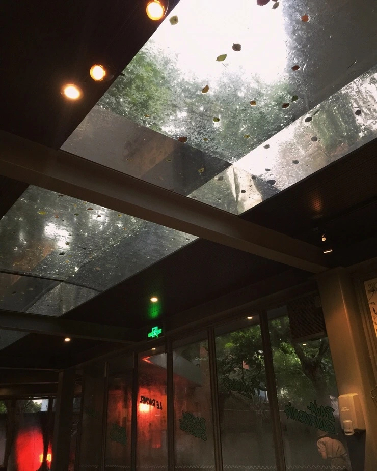 레이첼스의 비 오는 천창은 여전히 낭만적이다. 오랜만에 맛본 이 곳의 햄버거도 천창만큼 짜릿했고. J가 계산을 하는 순간엔 감동이 절정에 달했다.