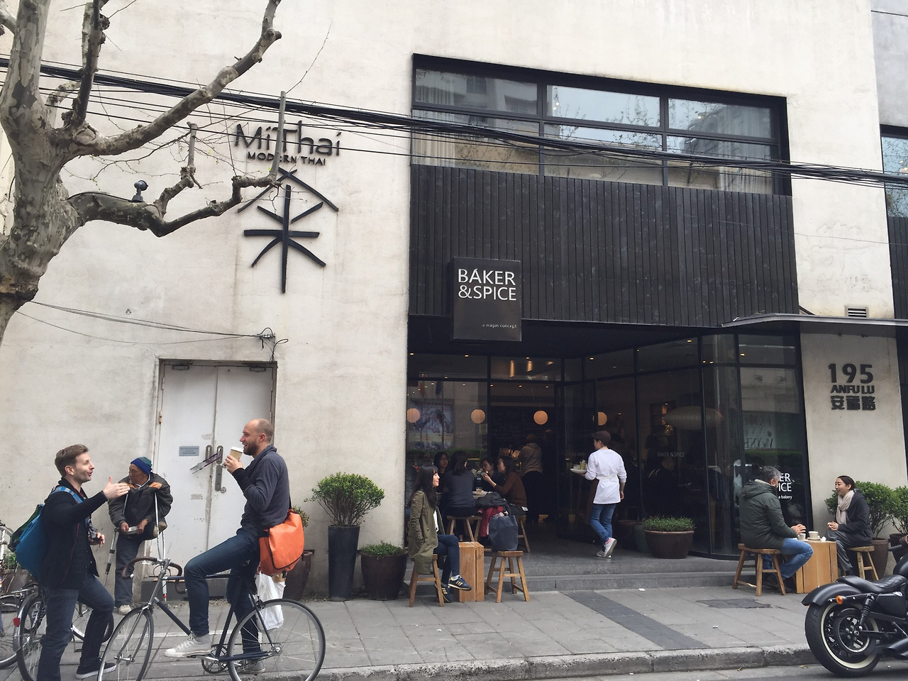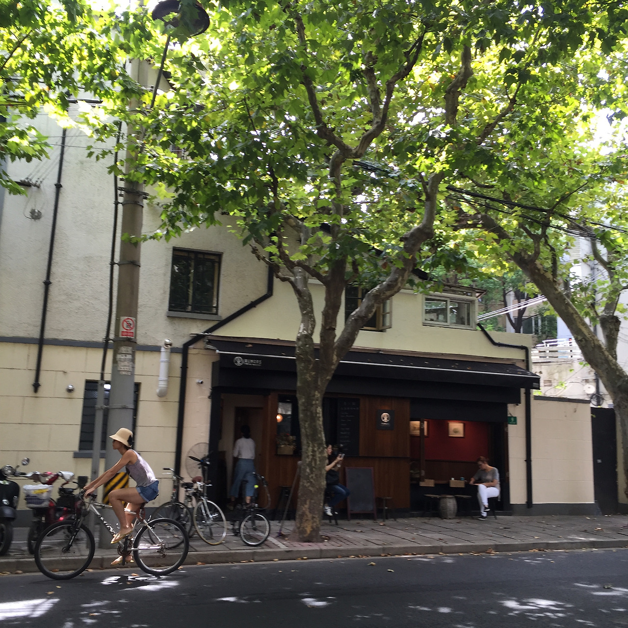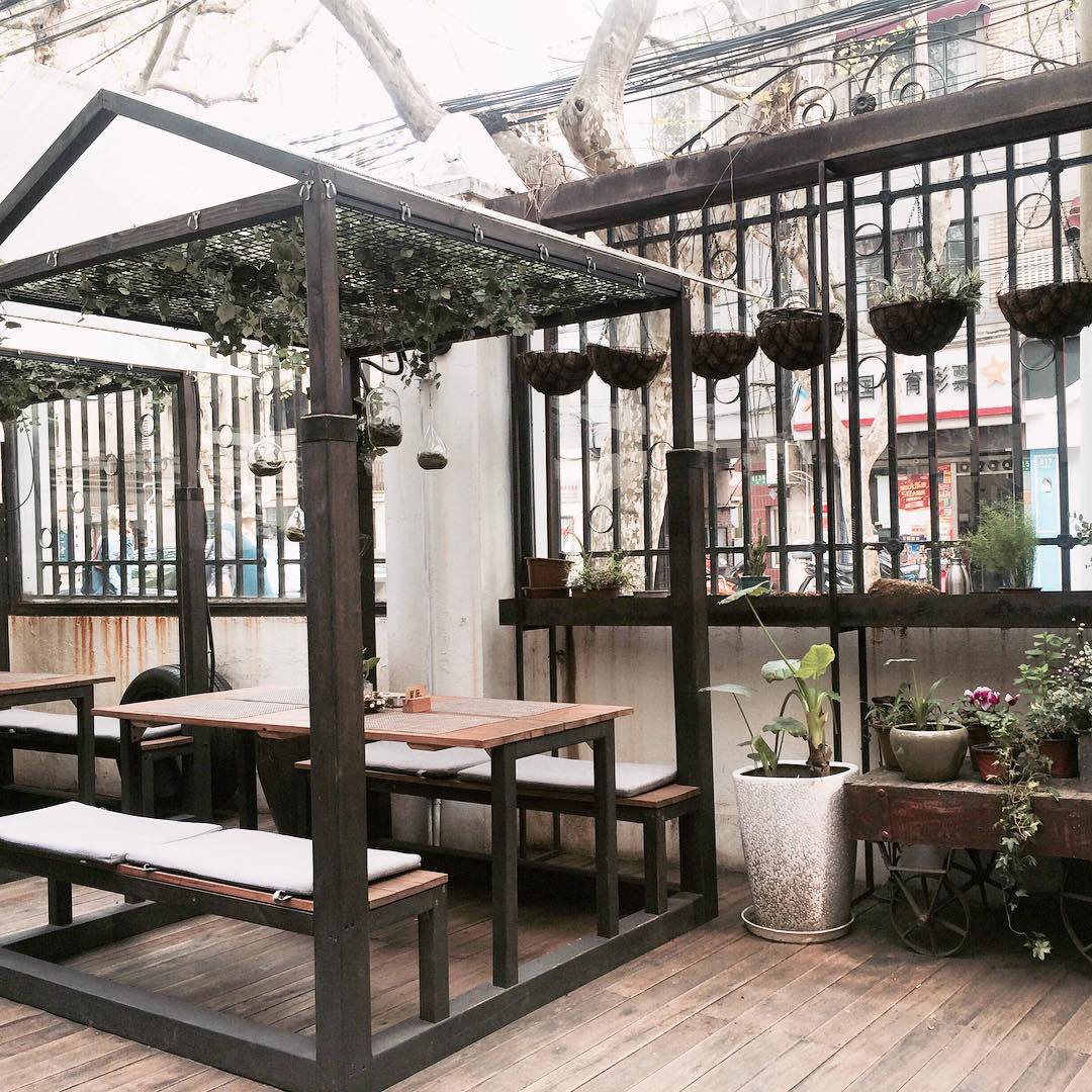 날이 너무 춥거나 너무 덥지 않은 이상 야외 좌석에 앉는다. 모두 약속이나 한 듯이 바깥 자리를 선호한다. 유난히 봄가을이 긴 이 도시에서는 야외 좌석을 즐길 수 있는 날이 많다. 파리의 노천카페가 극장 객석처럼 길가를 바라보고 있는 풍경이라면, 상하이의 노천카페들은 바깥과 한 몸이 되어있는 풍경이다. 거리의 계절과 기운을 관조하지 않고 온 몸으로 만끽한다.
