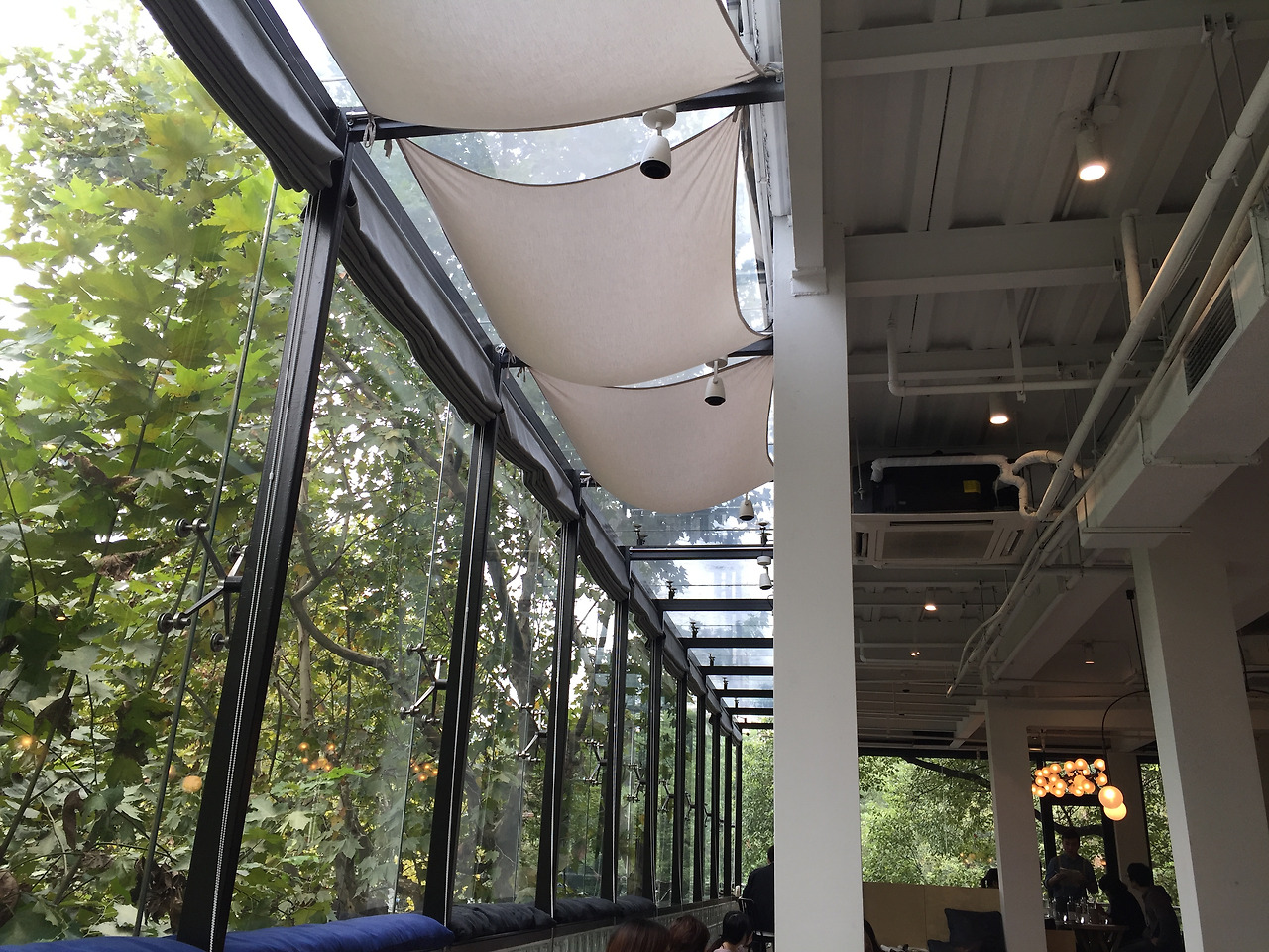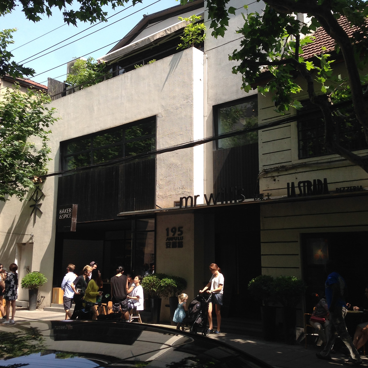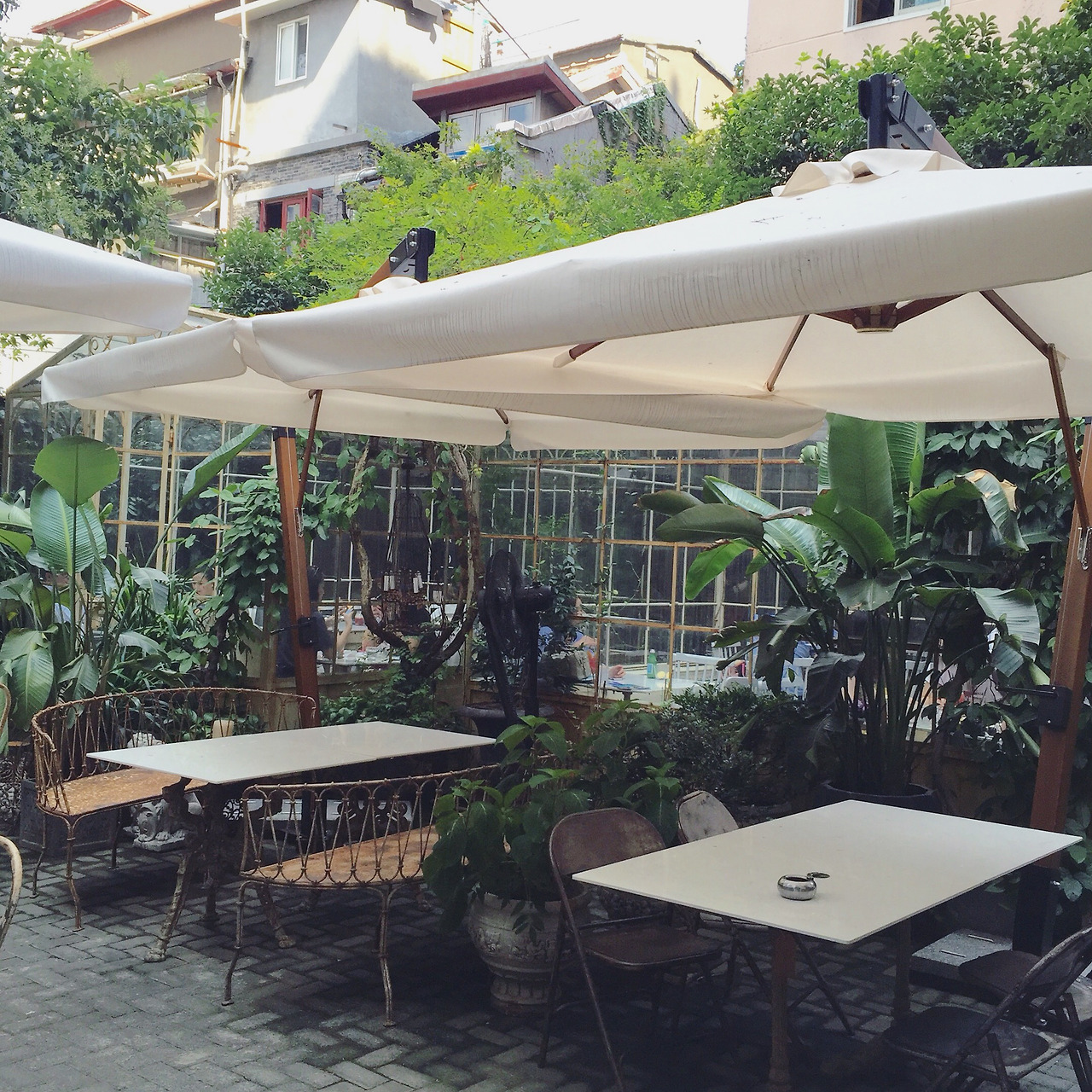 날이 너무 춥거나 너무 덥지 않은 이상 야외 좌석에 앉는다. 모두 약속이나 한 듯이 바깥 자리를 선호한다. 유난히 봄가을이 긴 이 도시에서는 야외 좌석을 즐길 수 있는 날이 많다. 파리의 노천카페가 극장 객석처럼 길가를 바라보고 있는 풍경이라면, 상하이의 노천카페들은 바깥과 한 몸이 되어있는 풍경이다. 거리의 계절과 기운을 관조하지 않고 온 몸으로 만끽한다.