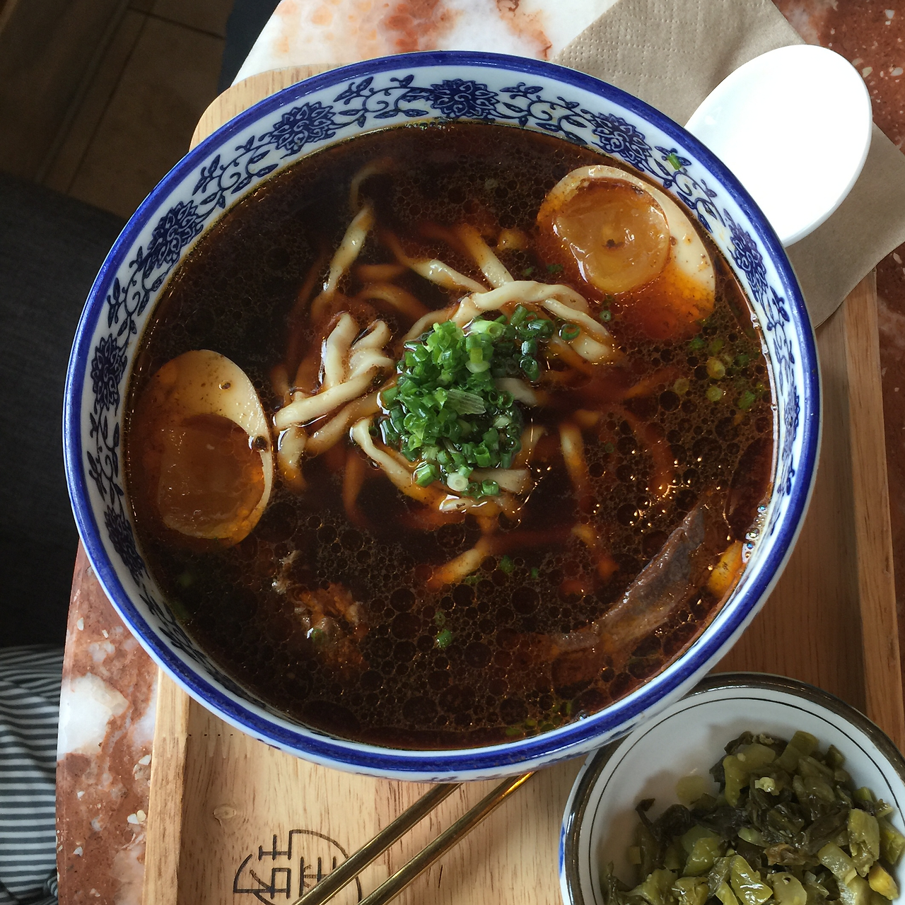 나는 탕을 먹을게. 응 그럼 나는 볶음면을 시킬게. 그렇게 두 개의 메뉴가 테이블 위에 올려지고 난 후에야, 그녀가 주문한 ‘돼지 내장 탕면’(생긴 것으로 보아 그런 듯하다)은 내가 먹을 수 없는 음식이라는 걸 알게 된다. 당면과 함께 곱창과 돼지 간 같은 것들이 붉은 기름이 떠 있는 탕 안에 굵직굵직하게 박혀있다. 김이 모락모락 떠오르는 탕의 수면 위에는 거칠게 자른 고수도 담뿍 뿌려져 있다. 저들 재료 중에서 내가 먹을 수 있는 것은 탕의 국물을 모두 씻어낸 당면 정도일 것이다. 반면 볶음면은 한결같이 맛있게 먹을 수 있다. 거부감이 드는 재료가 하나도 없는 음식. 짭조름한 갈색 양념이 배인 오동통한 면과 단 채소들이 뒤엉켜 입 안으로 호로록 빨려 들어가는 맛.