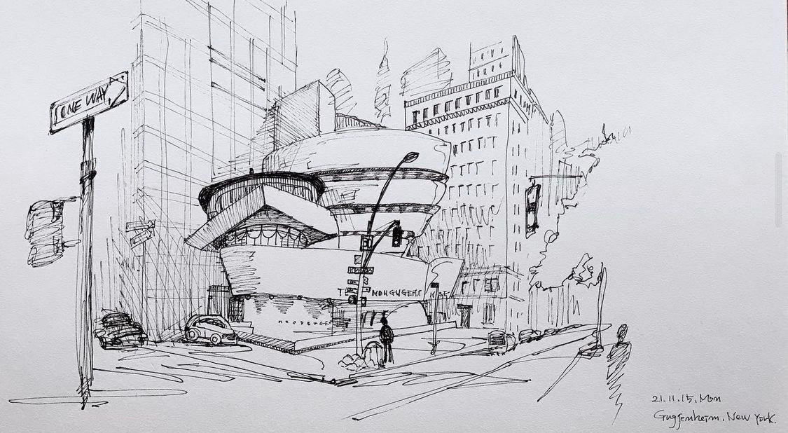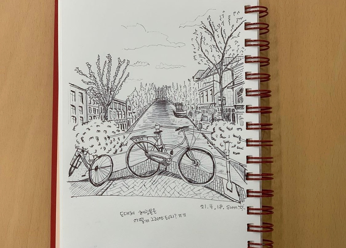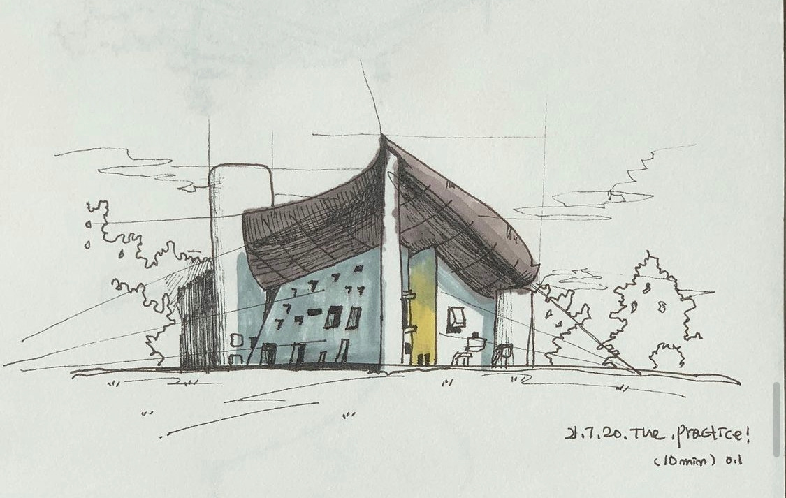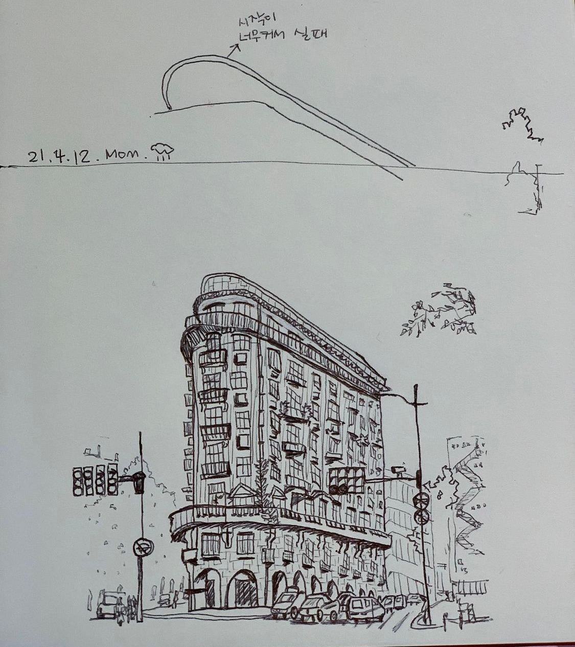 건축을 좋아해서였다. 정확히는 '건축물을 감상하는 것'. 세계의 도시들에 건축답사도 많이 갔다. 건축학도는 아니지만 그것의 철학적 미학적 매력에 오랫동안 빠져있었다. 그리고 작은 소망이 있었다. 건축물을 보러 가서, 감상하고 사진 찍고, 그곳의 카페에 앉아 커피를 마시며, 내가 찍은 건축물의 사진을 열고, 직접 그려보고 싶다. 하지만 똥손이라 안되지.라고 시작조차 안 했던 꿈.