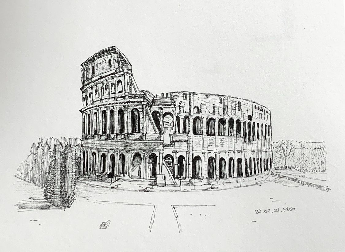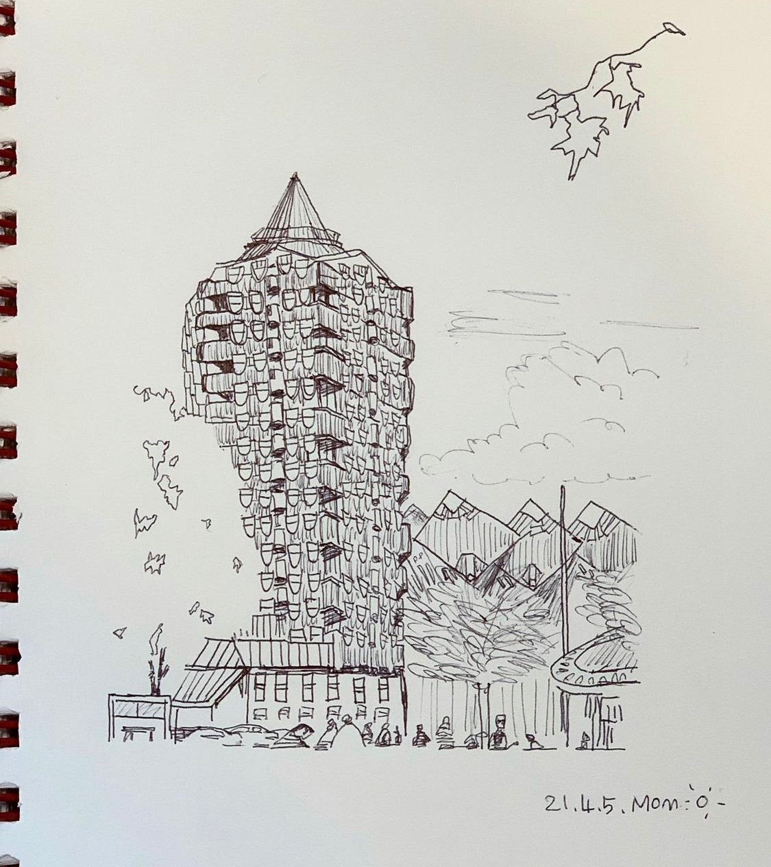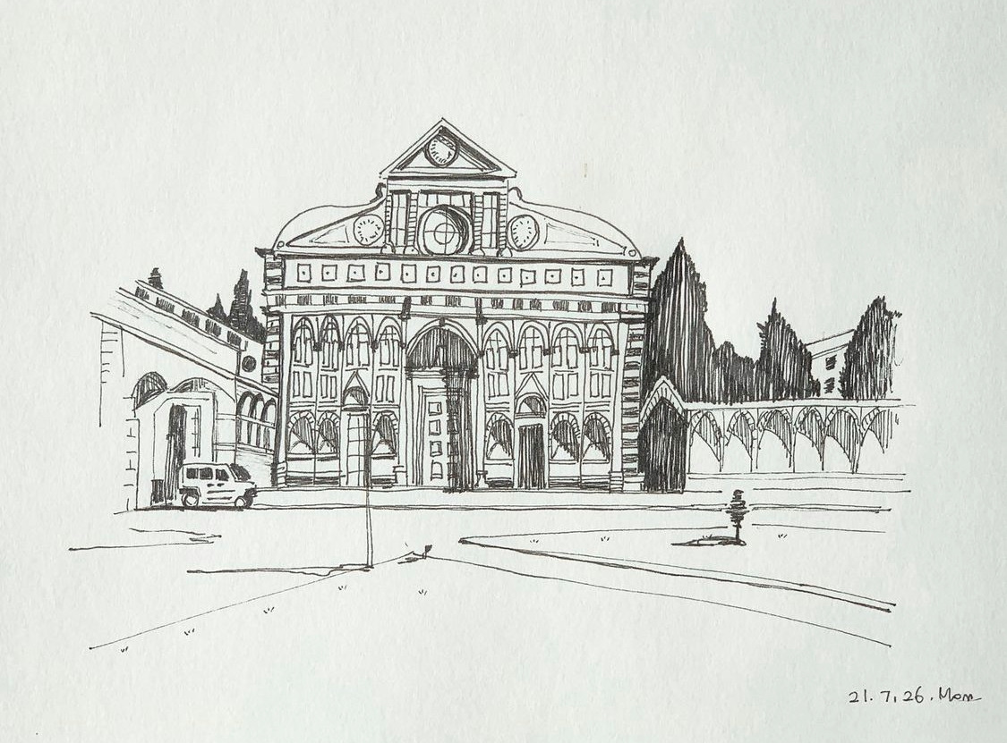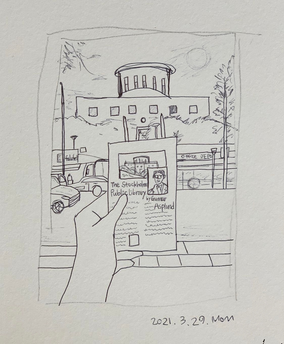 건축을 좋아해서였다. 정확히는 '건축물을 감상하는 것'. 세계의 도시들에 건축답사도 많이 갔다. 건축학도는 아니지만 그것의 철학적 미학적 매력에 오랫동안 빠져있었다. 그리고 작은 소망이 있었다. 건축물을 보러 가서, 감상하고 사진 찍고, 그곳의 카페에 앉아 커피를 마시며, 내가 찍은 건축물의 사진을 열고, 직접 그려보고 싶다. 하지만 똥손이라 안되지.라고 시작조차 안 했던 꿈.