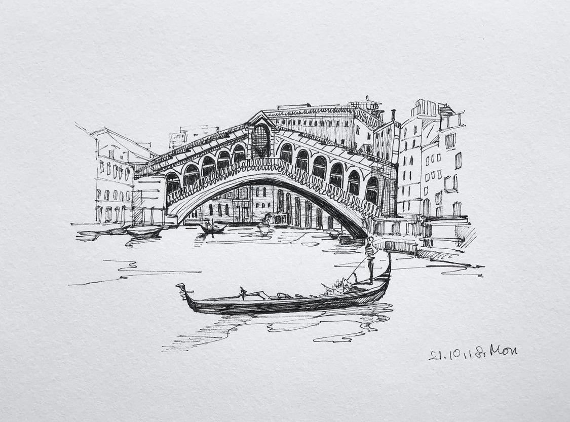 이탈리아 베네치아 '리알토 다리'_쌤이 그린 배가 더 멋짐