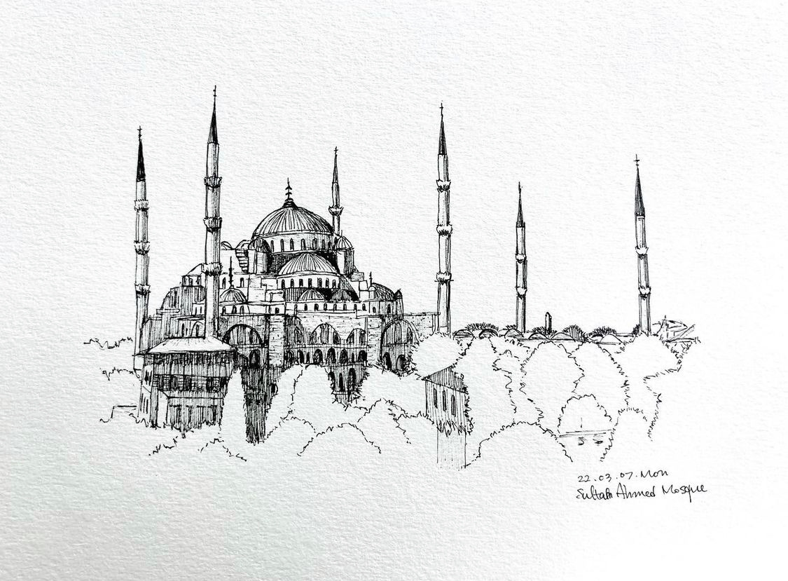 터키 이스탄불 '블루 모스크'_어우 상투머리 몇 번을 다시그려
