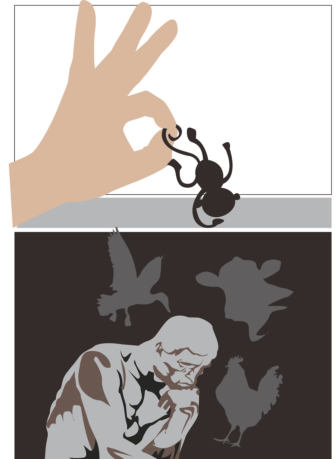 며칠 후, 남자는 거의 미치기 직전이 되어 스승을 찾아가 애원했다. 제발 자기 머릿속 원숭이를 없애 달라고.