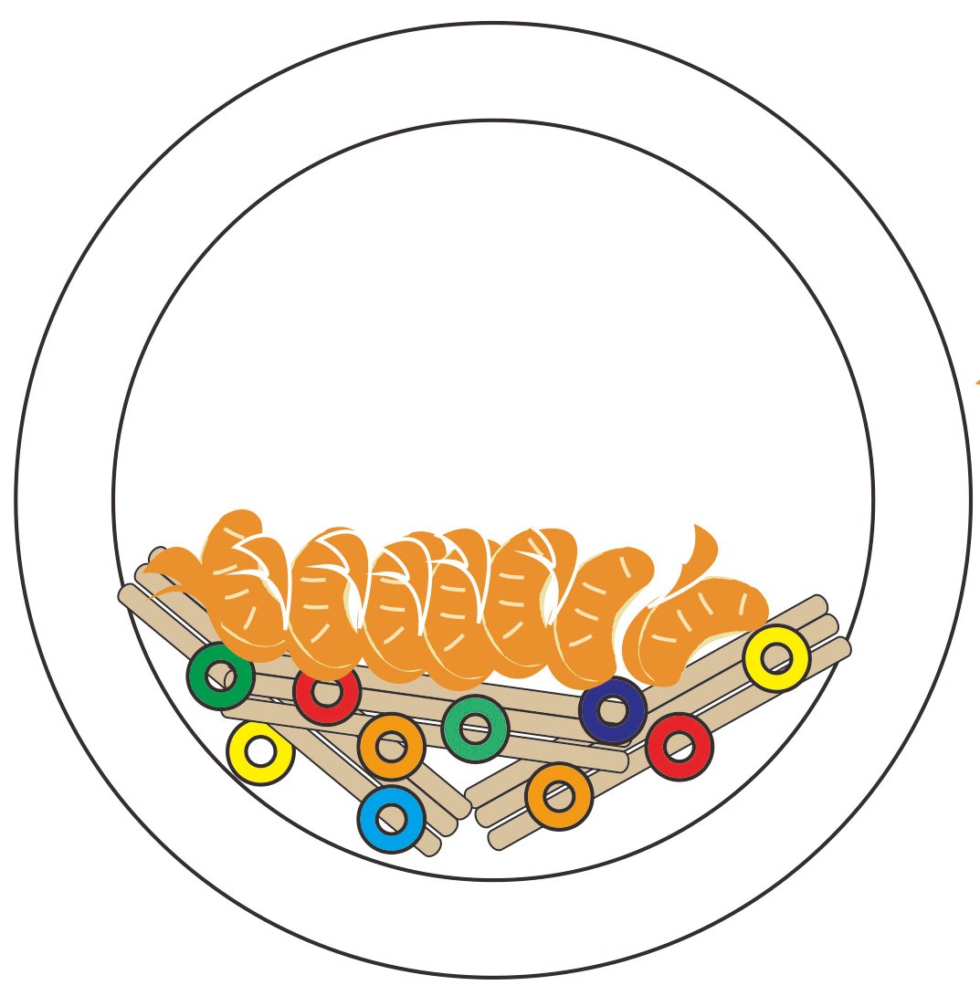 다음 사람의 접시는 귤 조각이 둥글게 놓여있고 막대 과자가 가운데 후르츠링 시리얼을 향해서 모여있다. 그 사람이 생각하는 추석은 가족들이 모두 모여 함께 맛있는 것을 먹는 날이라고 했다.