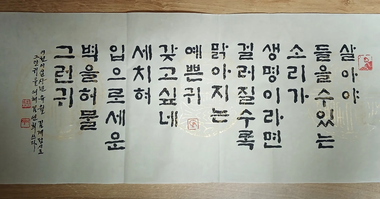 그래서 생각합니다. 예쁜 귀 하나 가져야겠다고. 그 어떤 말도 곱게 걸러져서 맑게 들리는 귀, 그 누가 뭐라 해도 달콤한 말에 현혹되어 실수하지 않을 귀, 맑은 말만 들려서 입이 더 예뻐지는 귀, 말이 아니면 듣지 않고 흘려버릴 수 있는 귀, 그리하여 말하는 것이 더 소중해지는, 그런 좋은 귀.