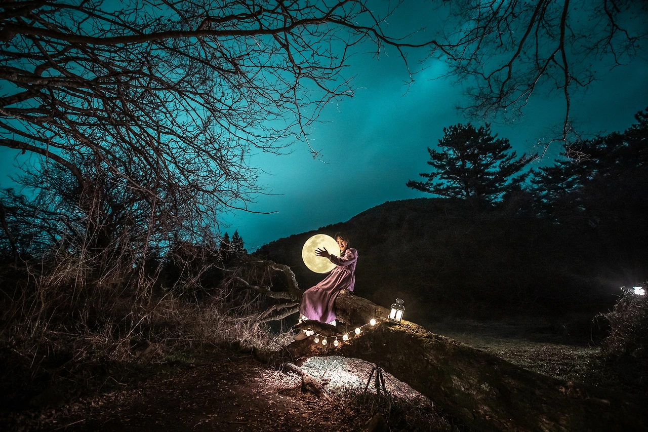 ‘나 혼자 새벽 스냅촬영 가보기’같은 작은 용기 말이다. 소품으로 제공된 보름달을 한아름 품고,