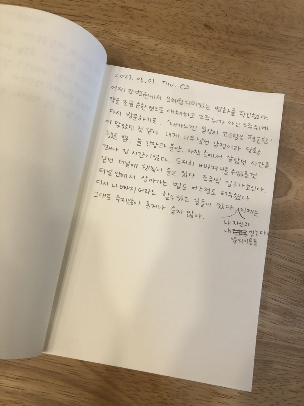어제 병원에서 모처럼 의미 있는 변화를 확인했다. 약을 조금 순한 것으로 바꾸고 2주 뒤가 아닌 3주 뒤에 다시 방문하기로. 내가 느낀 일상의 고요함은 ‘평온함’이 맞았던 것 같다. 내게 너무 낯선 감정이라 당황했을 뿐.