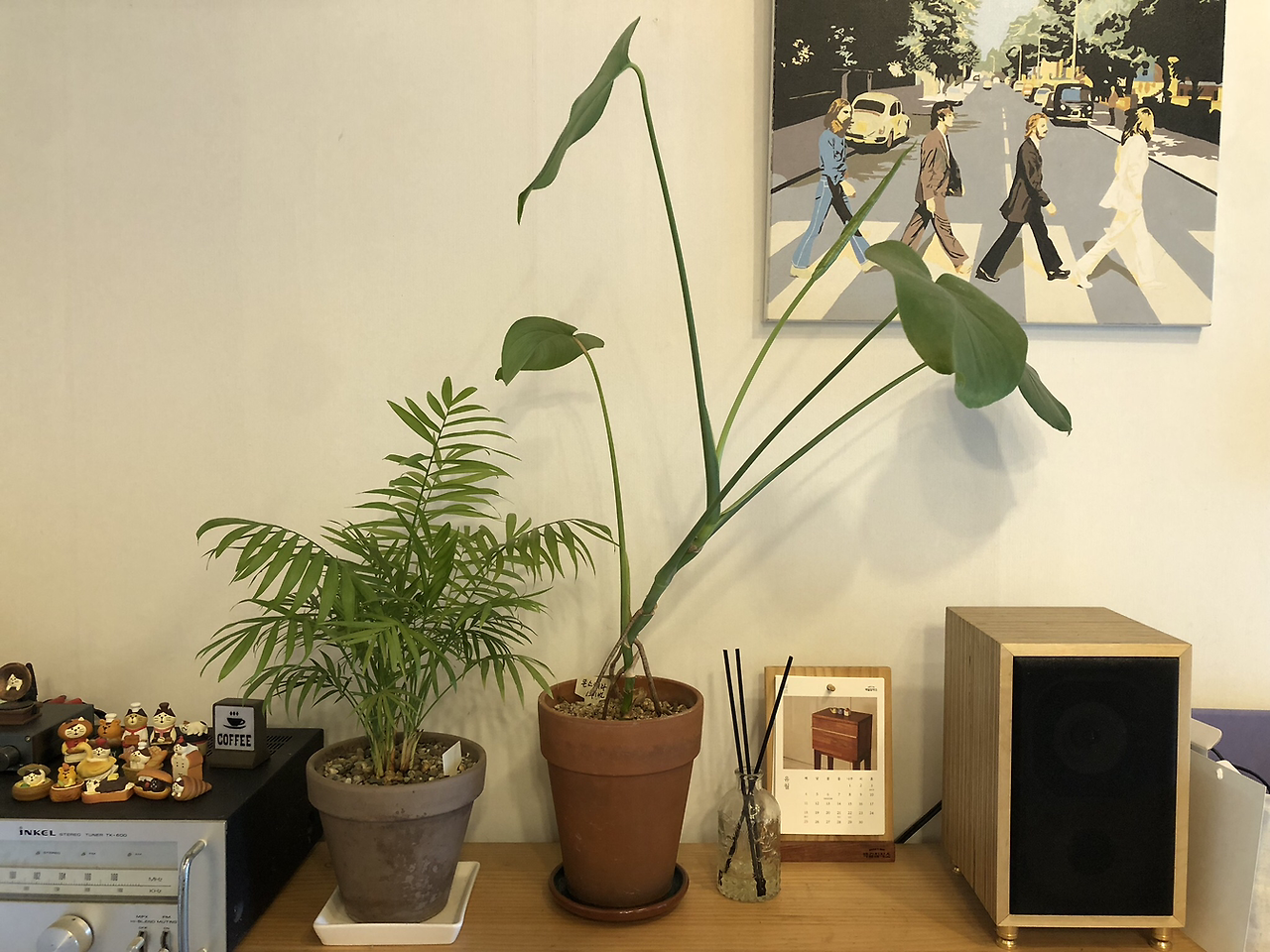 너무 습하지도 건조하지도 않아서 요즘은 아침 분무를 하지 않고 창문을 열어두는 것만으로도 식물에 생기가 넘친다. 아주 드물게, 긴 텀으로 새 잎을 보여주는 몬스테라도 최근 새 잎사귀를 밀어 올렸다. 지난겨울 지나치게 가지치기를 해줘서 미안했던 보스턴고사리의 잎들도 부쩍 풍성해졌다.