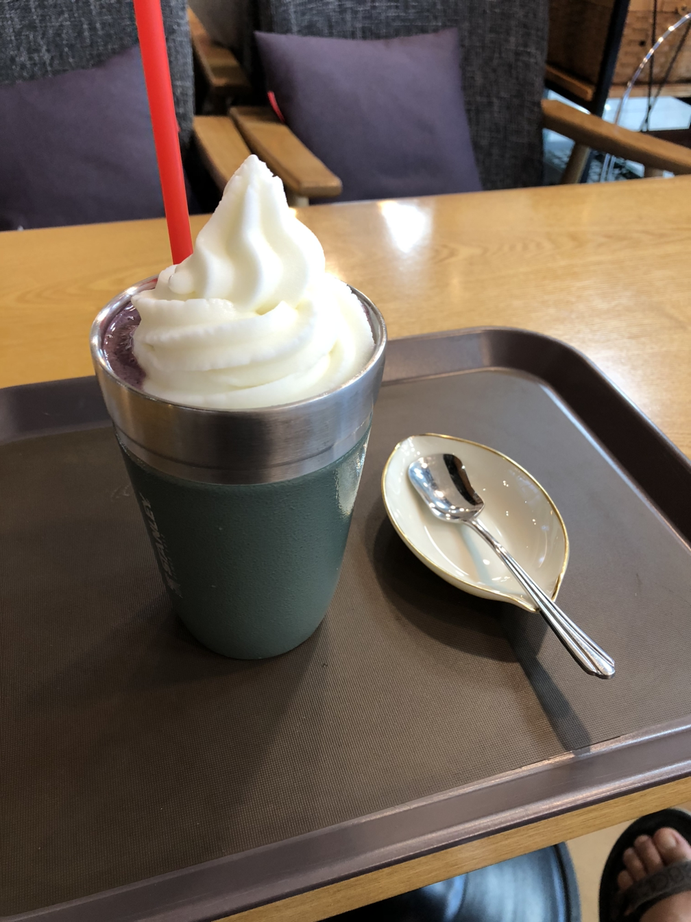 카페는 프랜차이즈 요거트 전문점인데, 사장님이 빈티지 물건 수집을 좋아하시는지 이국적인 그릇과 소품이 잔뜩 진열되어 있다. 요즘 커피를 줄이고 있어서 블루베리 요거트 스무디를 시켰더니 요거트 아이스크림이 잔뜩 올려져 나와서 횡재했다. 아까 터미널 근처 시장 횟집에서 먹은 회덮밥이 난이도가 좀 있어서 많이 먹질 못했는데 나머지 배를 채울 수 있겠다. (가시가 많고 껍질이 살아있는 회가 잔뜩 썰려 올라가 있는 회덮밥이었다. 경기도 촌사람한테는 까끌거리는 식감이 쉽지 않은 도전이었다.)