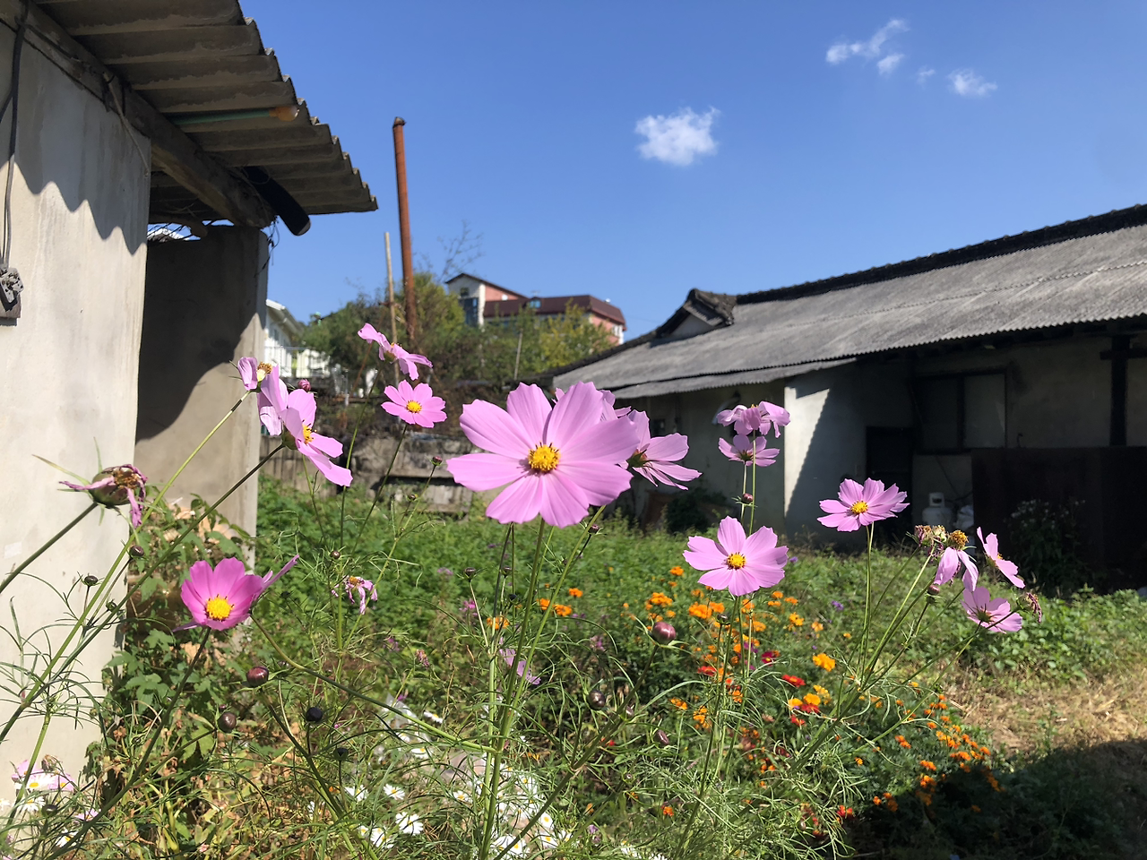 집 입구에는 작년에 길에서 씨를 받아 대충 뿌려놓은 코스모스가 발아를 성공했는지 처음으로 분홍색., 자주색 꽃을 피웠다. 주차를 할 때마다 차 옆면에 쓸려서 거슬리지만 이번 가을만 살 테니 내버려 두기로 했다. 잡초만 간신히 제거할 뿐 어떤 관리도 못하고 있는데도 때 되면 이렇게 필 꽃은 피고 살 것들은 살아간다. 내내 미안한 마음이다.
