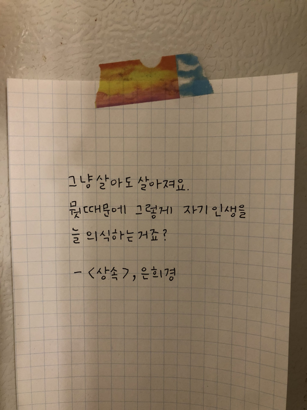 새해 첫 날인 오늘, 아이가 나에게 “엄마는 새해 계획이 뭐예요?”하고 물었다. 나는 “올 해에는 설거지를 미뤄놓지 않고 그때그때 할 거야. 그리고 가계부를 잘 쓸 거야. 운동을 하고 몸에 좋은 음식을 먹을 거야.”라고 대답했다. 나는 이 대답을 꽤 오랫동안 준비했다. 가벼워진 내가 욕심내지 않고 이 걸음마를 이어가기 위한 방법들이다.