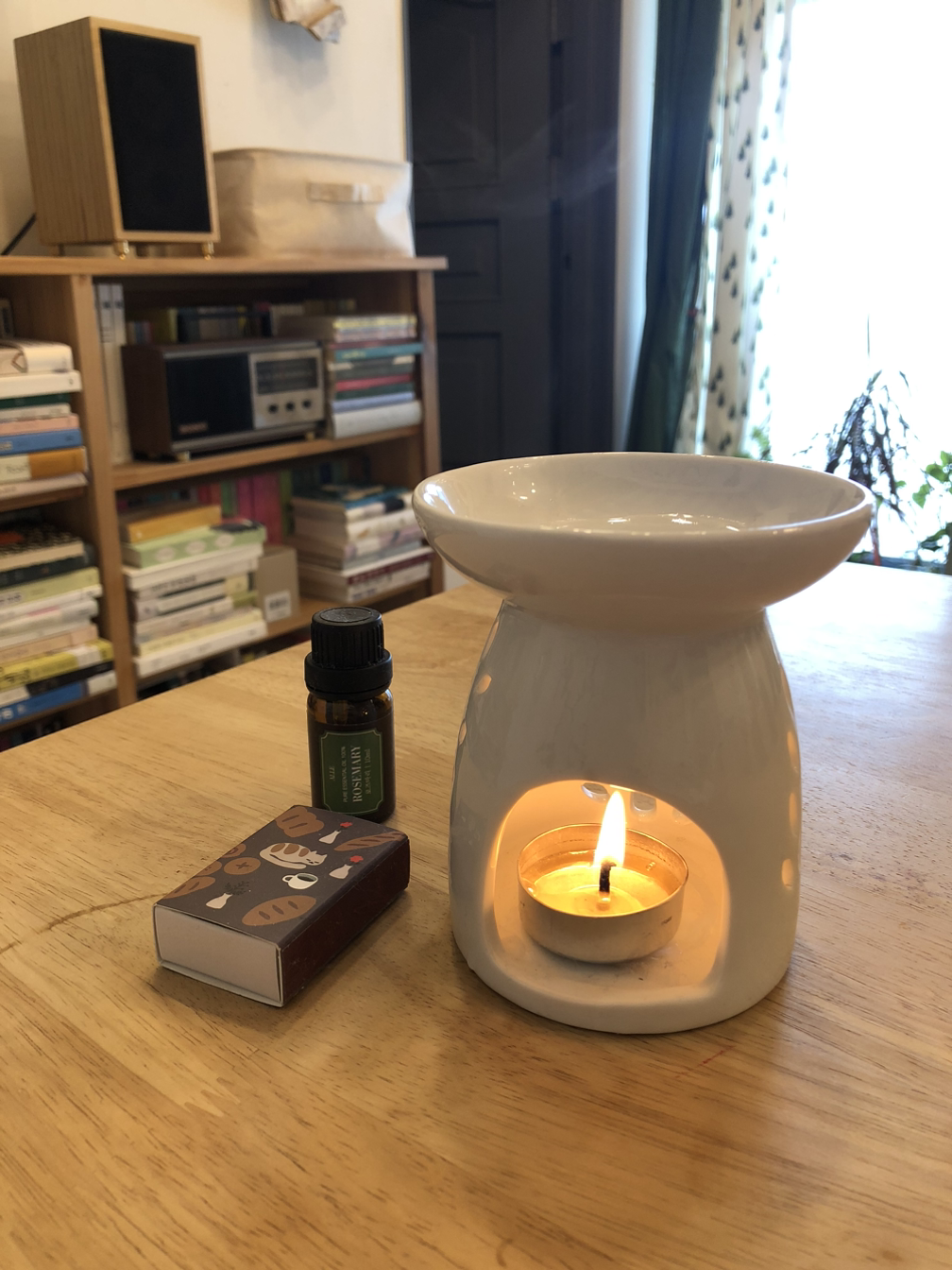 대신 조금 남은 로즈마리 오일을 물이 담긴 캔들 홀더에 따라 성냥으로 초를 켰다. 상큼 시원 은은한 향이 금세 코끝에 맴돌고 주변 공기를 감싼다. 로즈마리는 정신을 맑게 하여 잠을 깨우는 데 좋고 라벤더는 숙면에 좋다고 한다. 낮에는 주로 레몬과 로즈마리 향을 맡는다. 좋은 향은 퍽 좋은 휴식이다. 예전엔 자주 그렇게 했었는데. 겨울 내내 거실에 히터와 실링팬을 돌리느라고 잊어버리고 있었다. 봄이 온 주말, 모처럼 히터를 끄고, 테이블을 깨끗하게 치우고, 아로마 휴식을 취한다. 잔잔한 음악과 함께다. 욕심에는 책도 읽고 싶은데 그것까진 하지 않기로 했다.