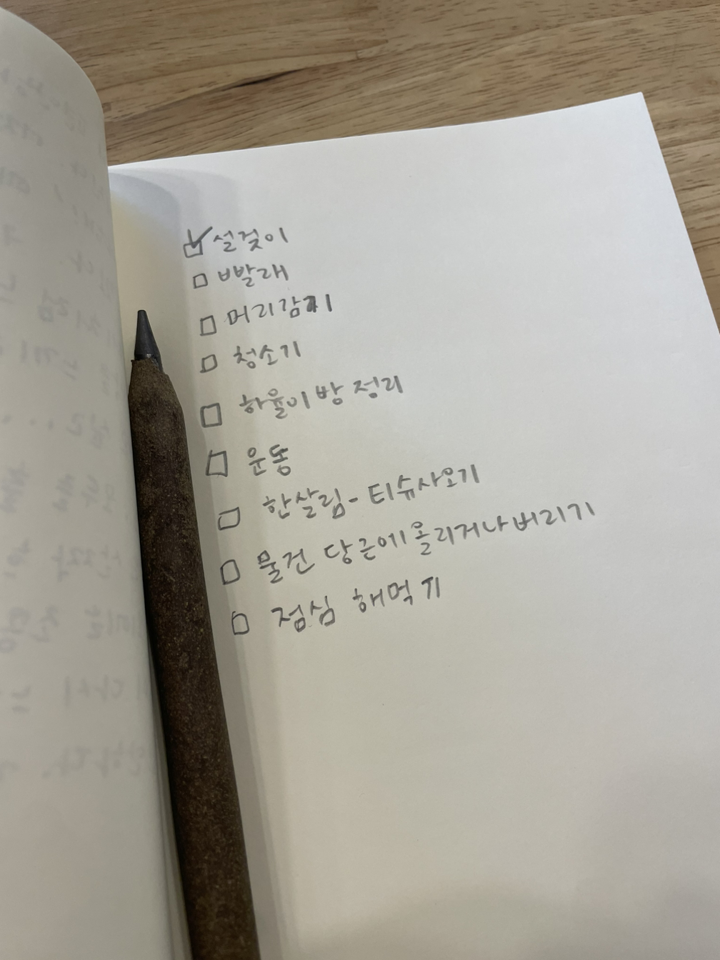 책상 앞에 앉아 공책을 꺼내고 연필을 든 게 얼마만의 일인지 모르겠다. 한동안 편안하였다가 한바탕 폭풍이 지나갔다.