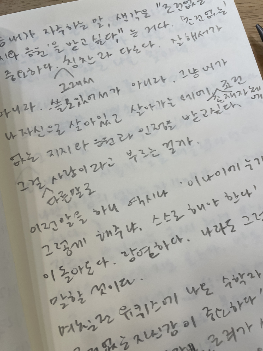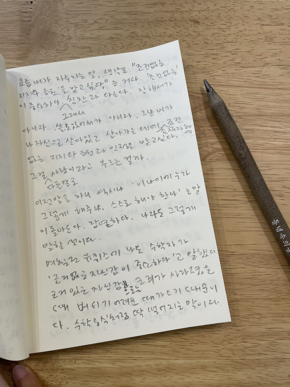 지금의 날아가는 글씨처럼 막 살아도 사실은 괜찮을지도 모른다. 반듯한 글씨가 아니어도 살아가는 데 조금 불편할 뿐 아무 지장이 없을지도. (나의 또박또박한 글씨 또한 완벽한 소통과 받아들여짐을 향한 내적 욕망일지도 모른다.)