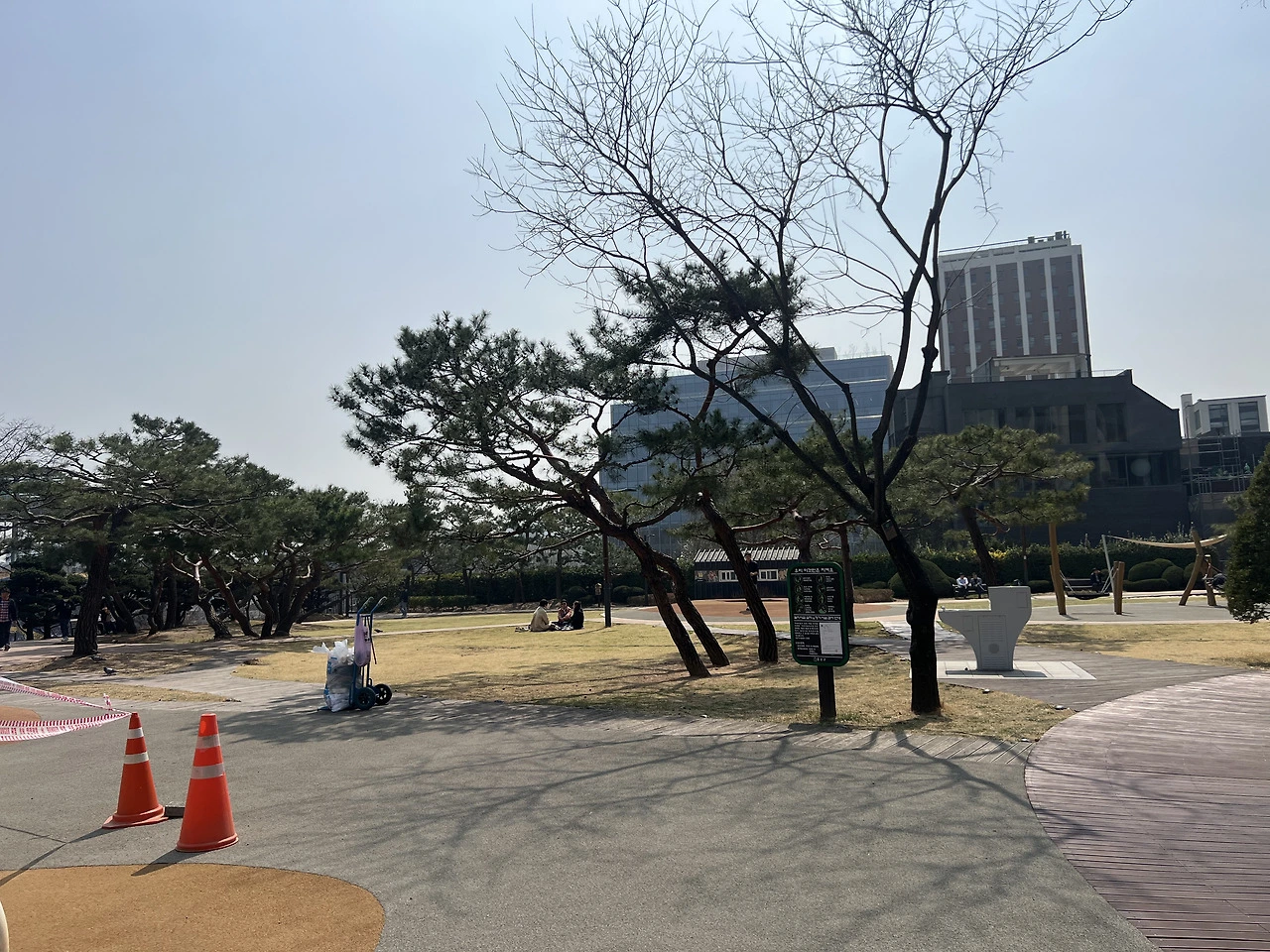 도시락을 싸왔는데 궁 안에서는 음식물 섭취가 안된단다. 어릴 적 궁궐로 소풍 갔던 기억만 생각했는데 많이 달라졌구나. 밖으로 나오니 돌담 건너편에 공원이 보인다. 원서근린공원은 제법 크고 운동시설도 꽤 잘 되어있다. 식후 커피를 즐기는 직장인들이 두런두런 모여있는 커다란 나무 옆에 앉아 도시락을 먹는다. 비둘기들이 부스러기라도 얻으려는 듯 다가오는데 너희 줄 것은 없단다.