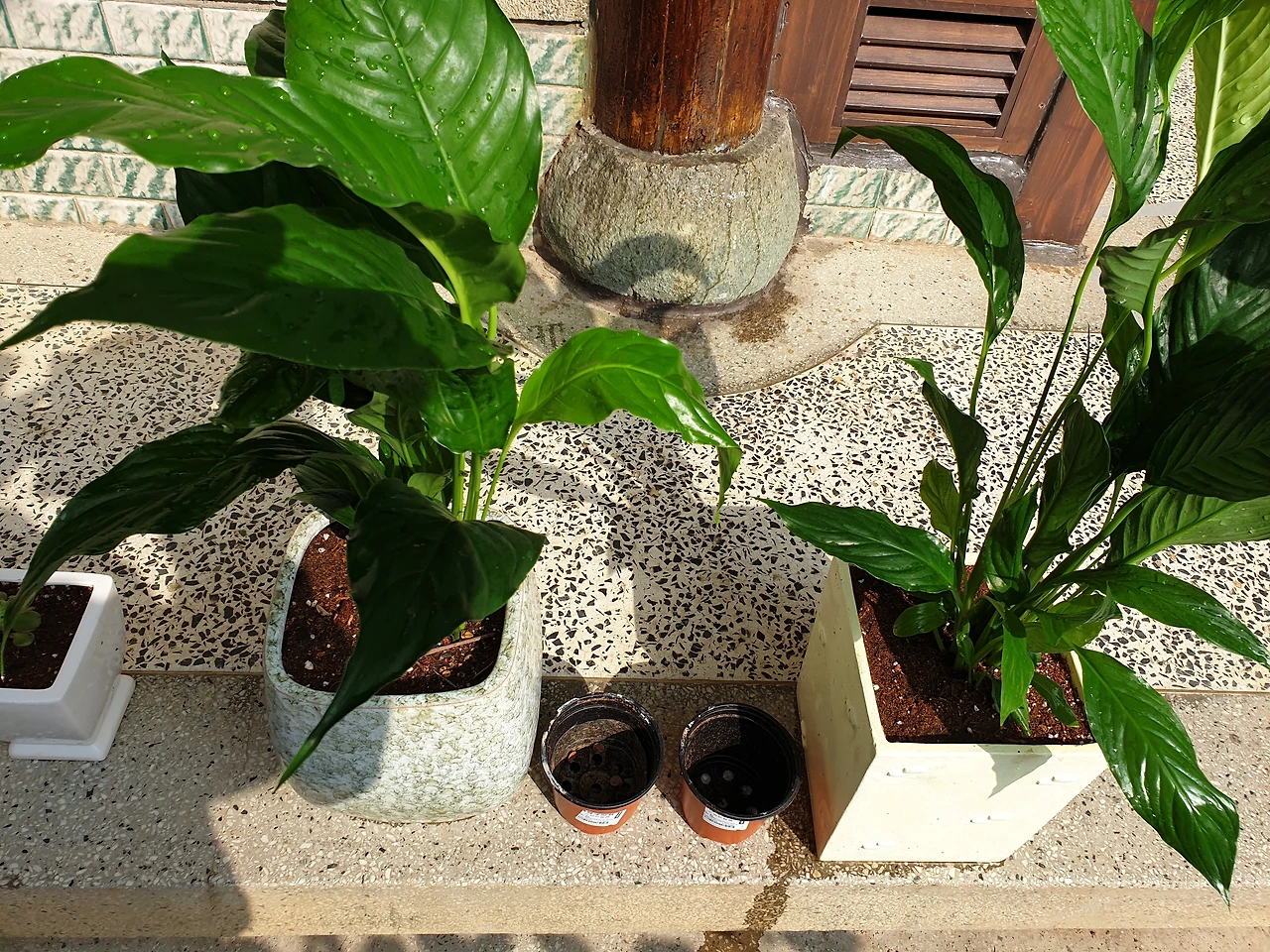 작은 플라스틱 화분에서 어떻게 숨쉬었을까 싶을 정도로 커다랗게 자란 화초들.