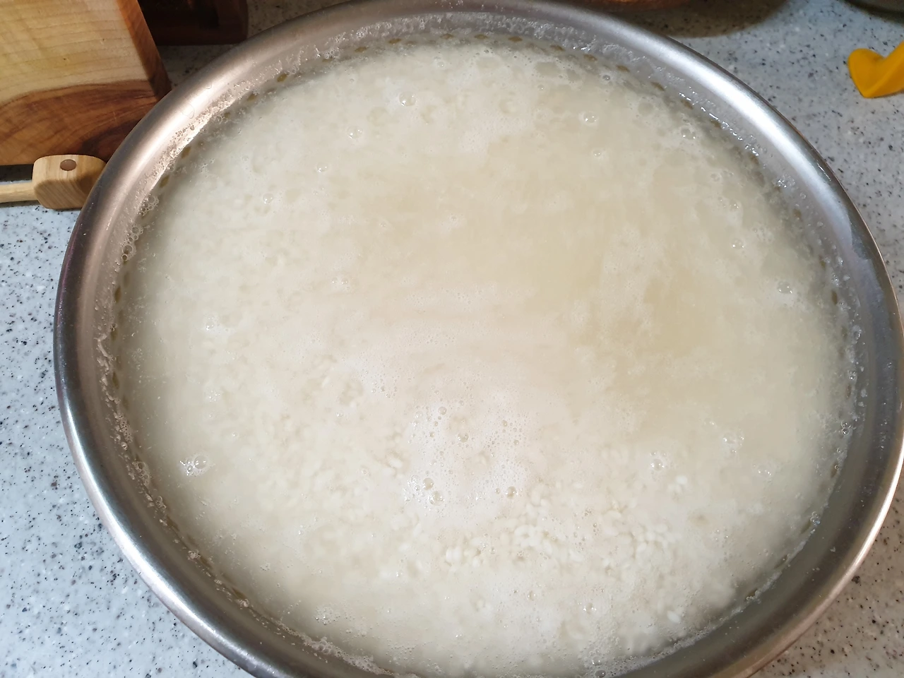 찹쌀을 5일 정도 삭혔다. 쿰쿰한 냄새가 난다.