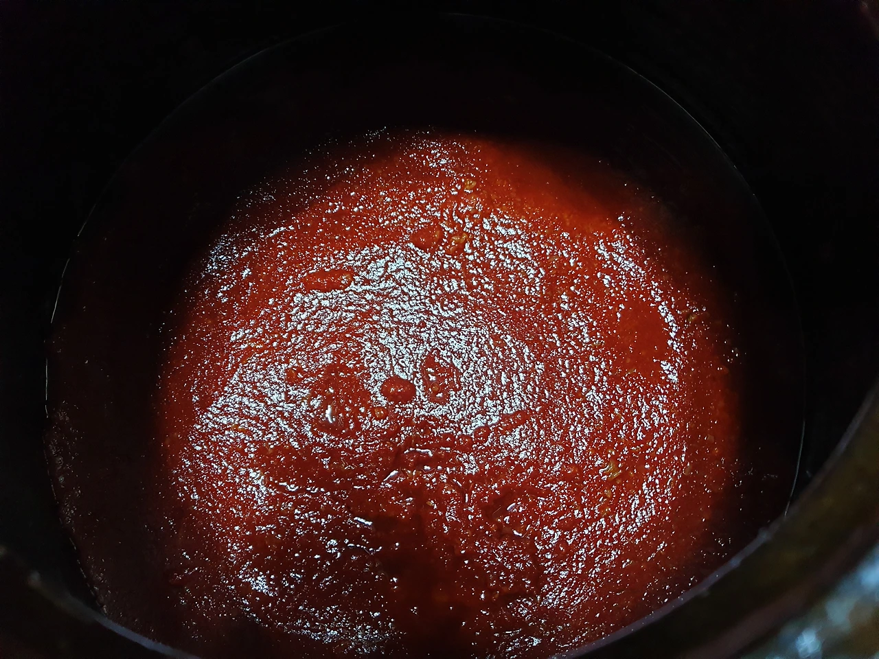 찹쌀밥에 메줏가루, 고춧가루, 소주, 찹쌀 조청을 넣고 저어주면 고추장 모습을 갖춘다.