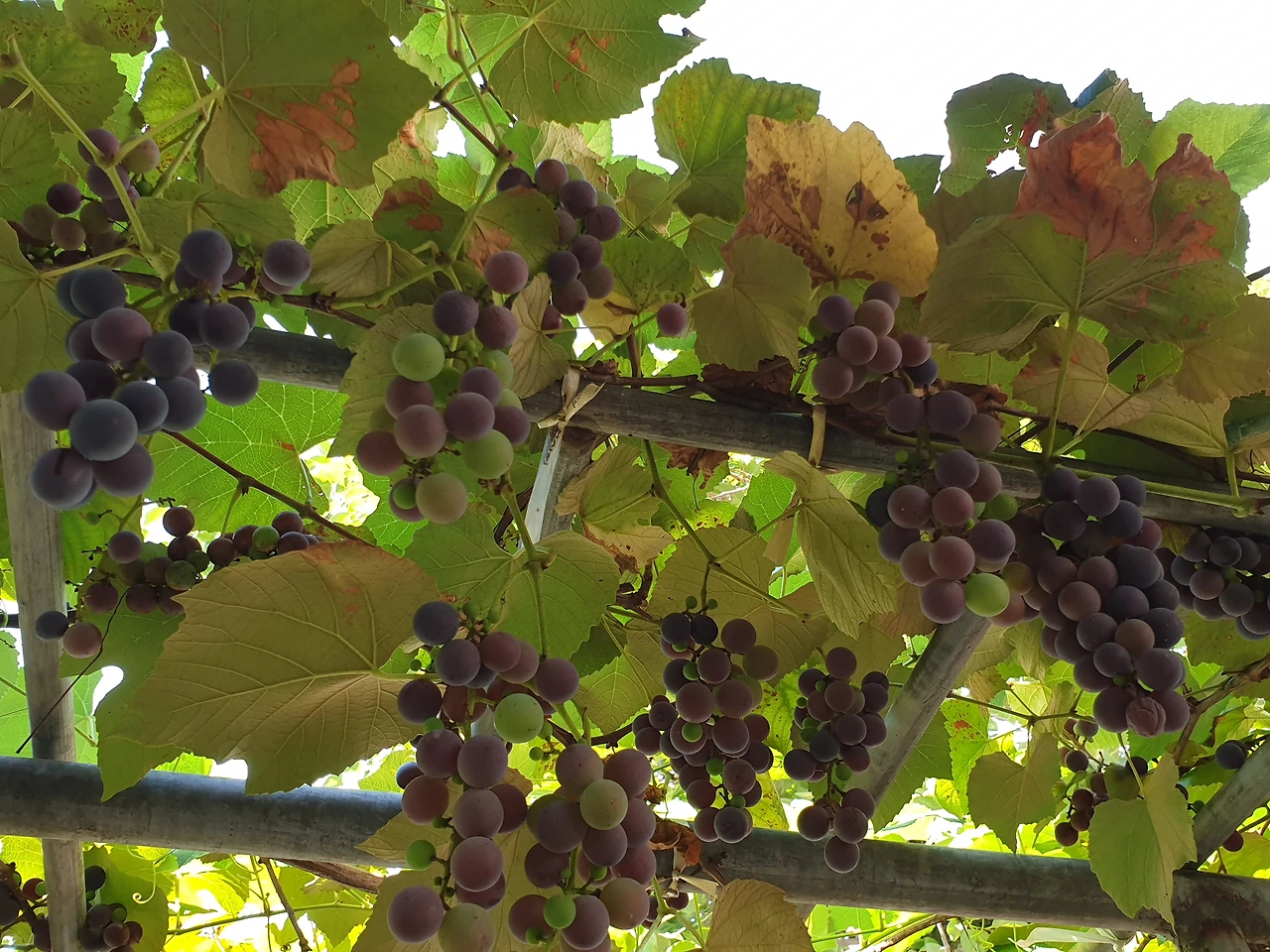 봉지 없이도 맛이 들어가는 포도를 보며 애써 봉지를 씌우는 이유가 뭘까 찾아보았더니 햇빛을 골고루 받게 하여 포도색을 고르게 하기 위함이고, 농약이 묻지 않게 하기 위함이라 했다. 달달한 포도 냄새라 퍼지는 것을 막아 벌레의 꼬임을 막기 위함도 있다 한다. 우리 집 포도는 판매를 할 것이 아니니 맛만 있으면 색이 고르지 않아도 상관없고 농약을 하지 않으니 봉지 또한 씌울 필요가 없다. 늘 지켜보고 있으니 새나 벌레가 꼬일 일도 없다.