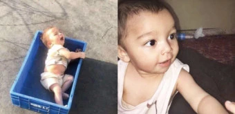 카불 공항에서 부모와 헤어진 아이의 모습. 천진스럽다.