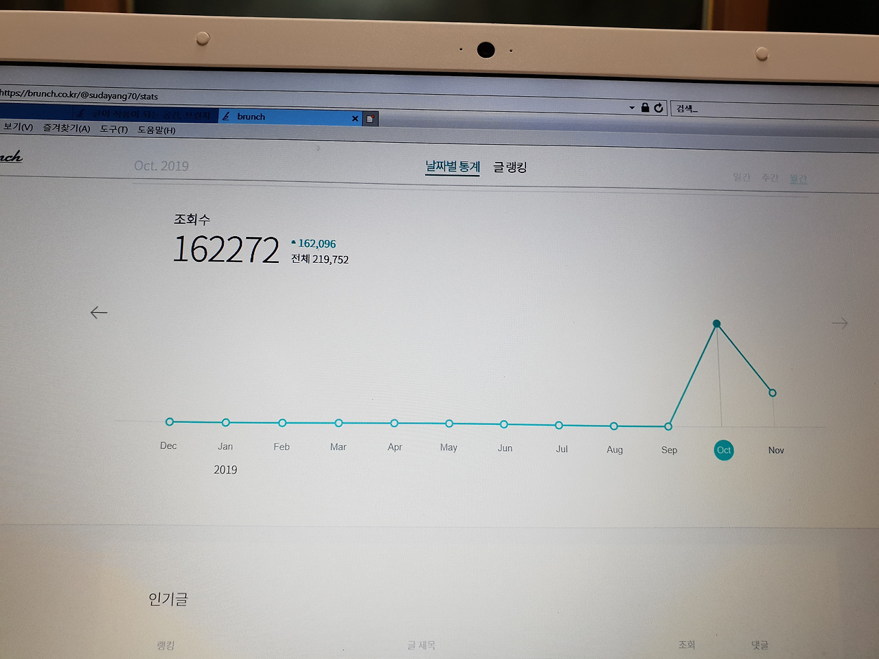 그리고 블로그에서는 상상할 수 없었던 기쁨까지 안겨주었다. 잠시 기계의 오작동을 의심하게 했던 어마 무시한 조회수로.