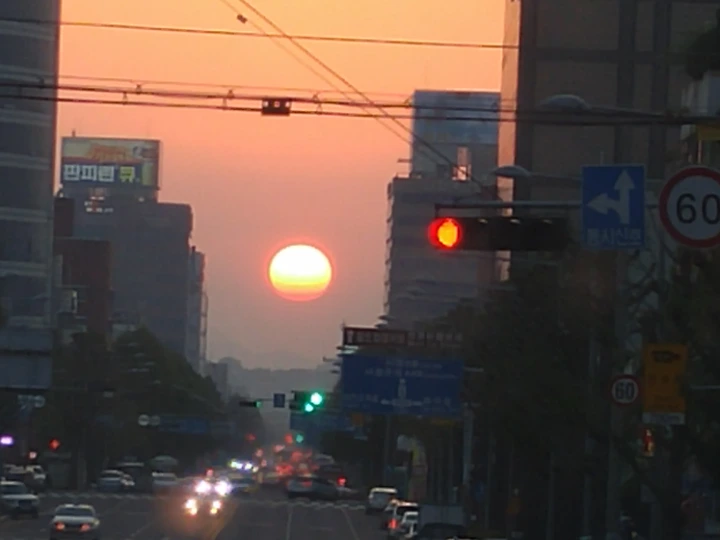 퇴근길에 맞이한 석양의 모습, 여행지에서 작정하고 맞이한 석양이 아닌 도시에서 퇴근길에 우연히 맞이한 석양은 하루 일과를 잘 마무리했다는 자연의 선물 같았다.