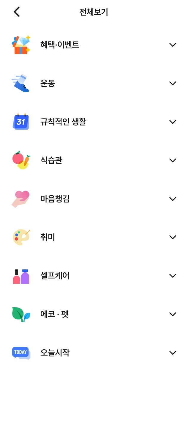 다만, 아쉬운 점은 '맞춤형 큐레이션'이 안되어 있다는 점. 시작할 때 이 앱에 들어온 목적, 즉 내가 만들고 싶은 습관을 조사해서 유저에게 맞춤형 큐레이션을 제공했다면 조금 더 매끄럽게 진행되었을 것 같다.