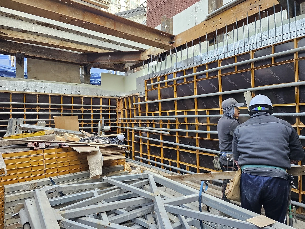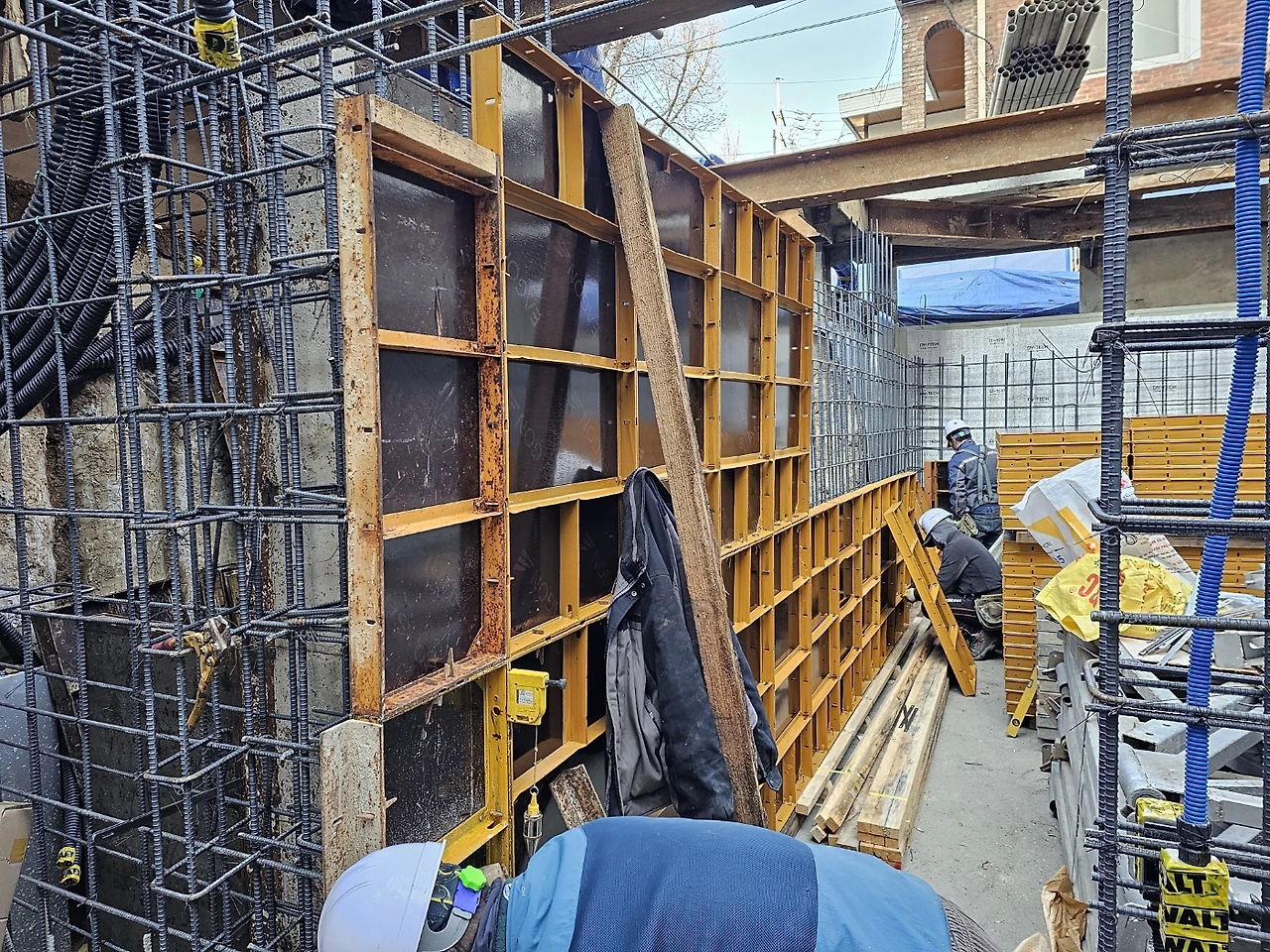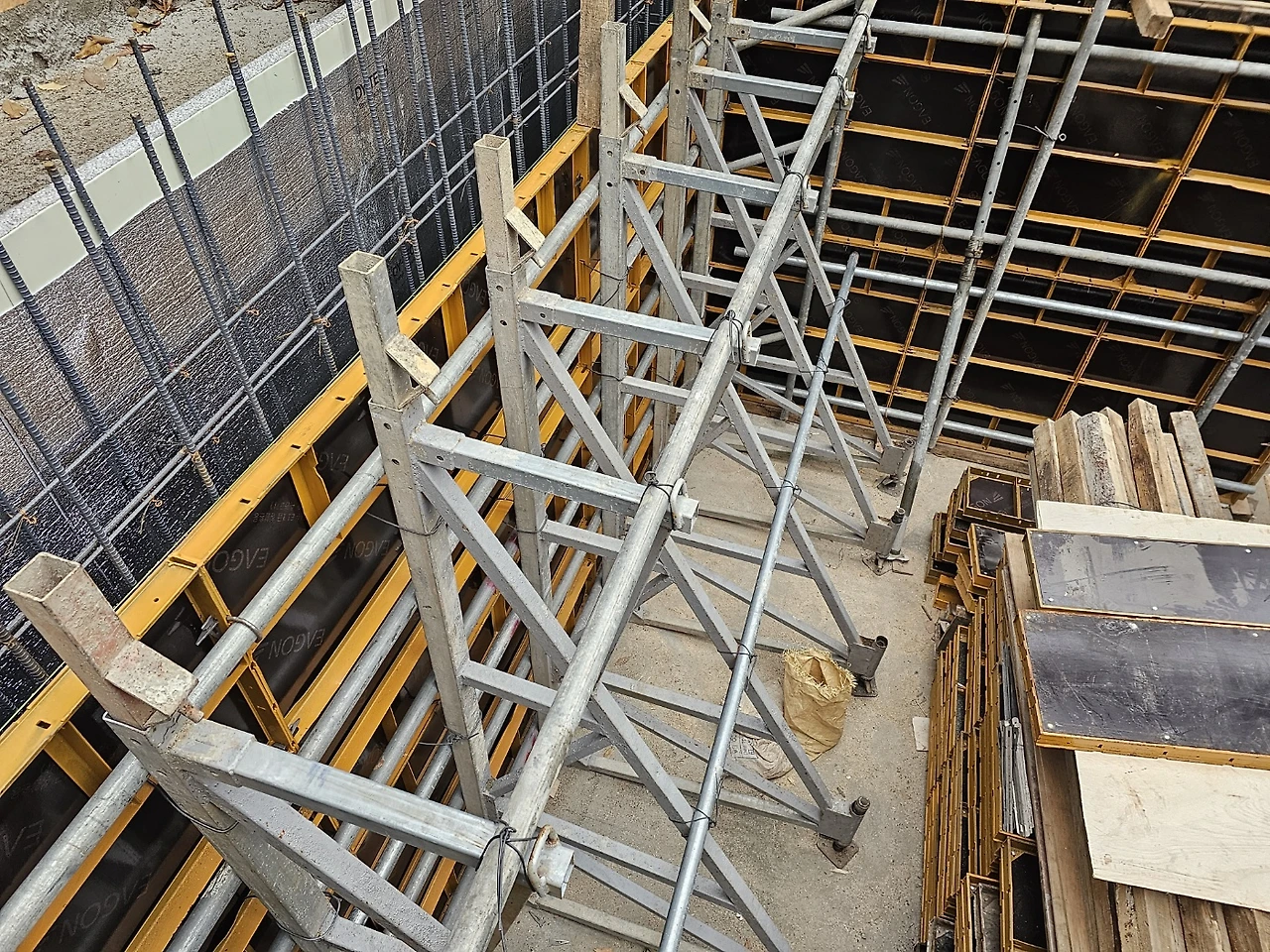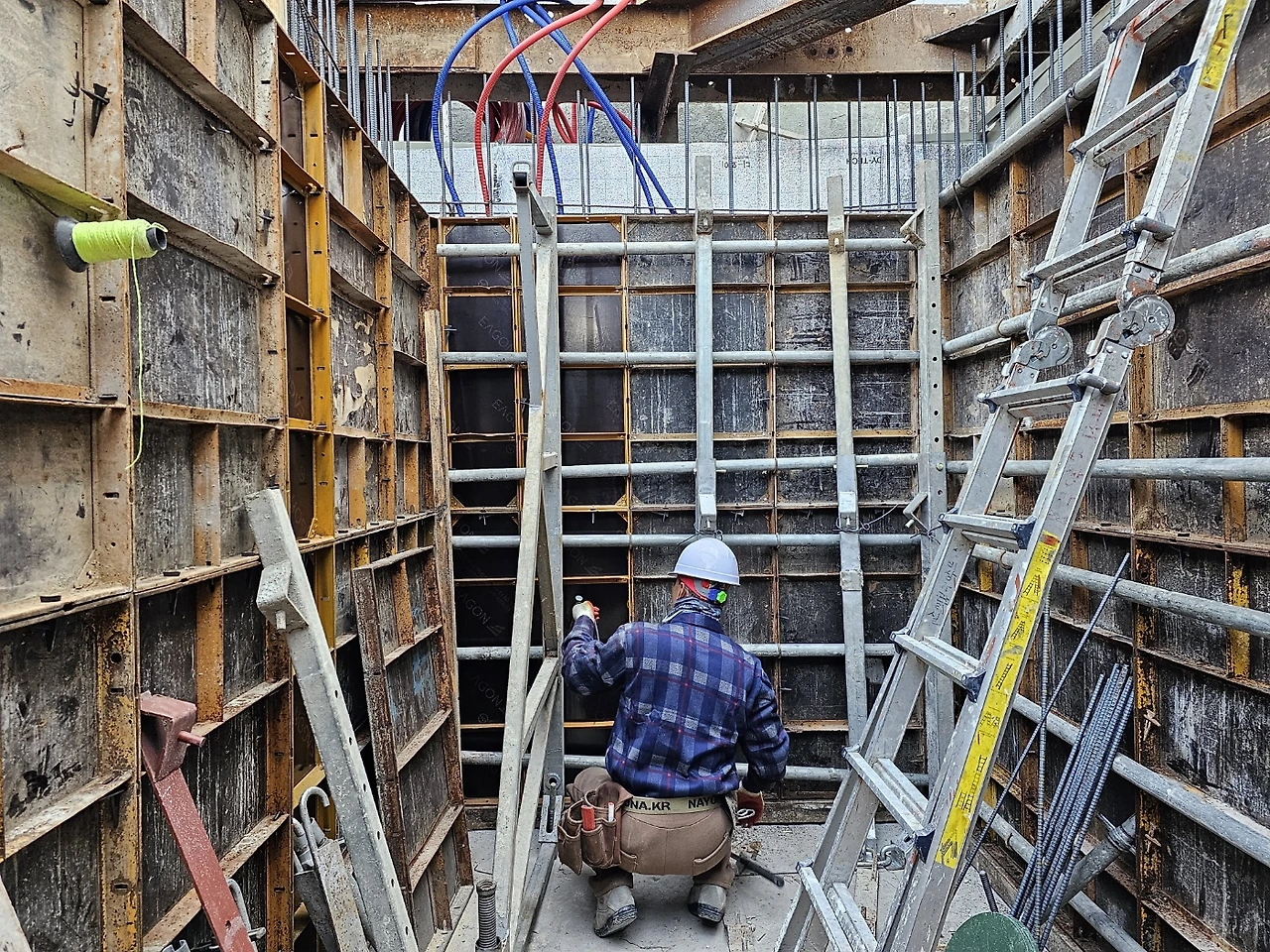 1. 지하층 가설재 반입 및 유로폼 붙이기