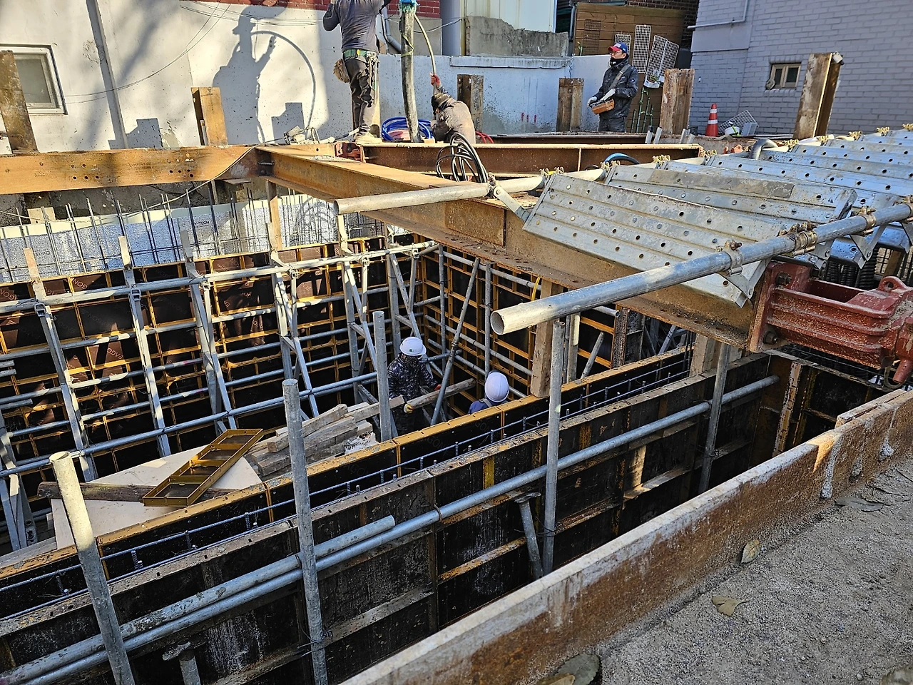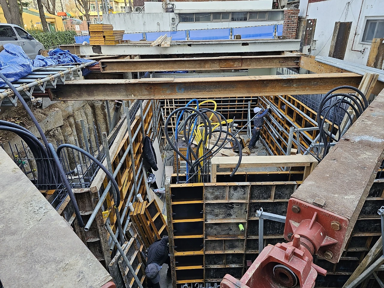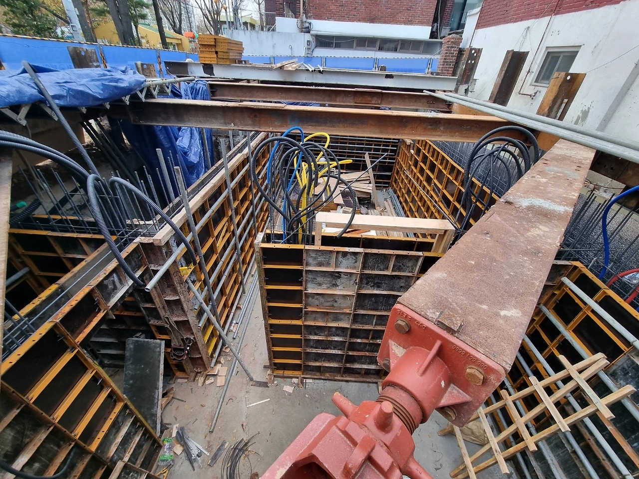1. 지하층 가설재 반입 및 유로폼 붙이기