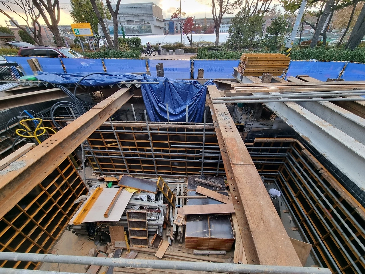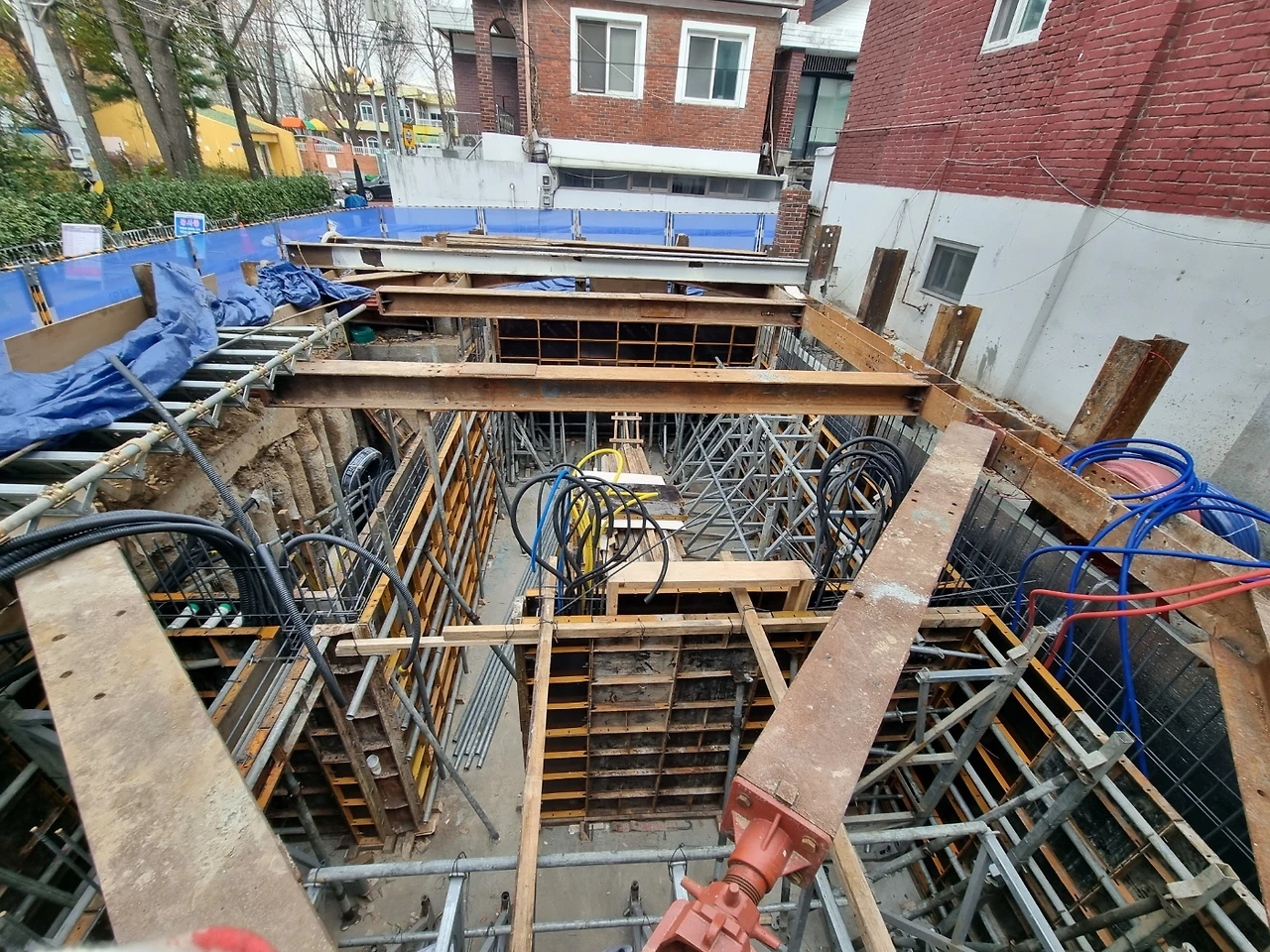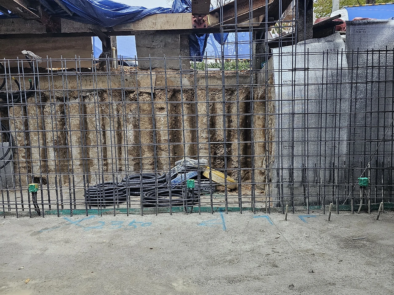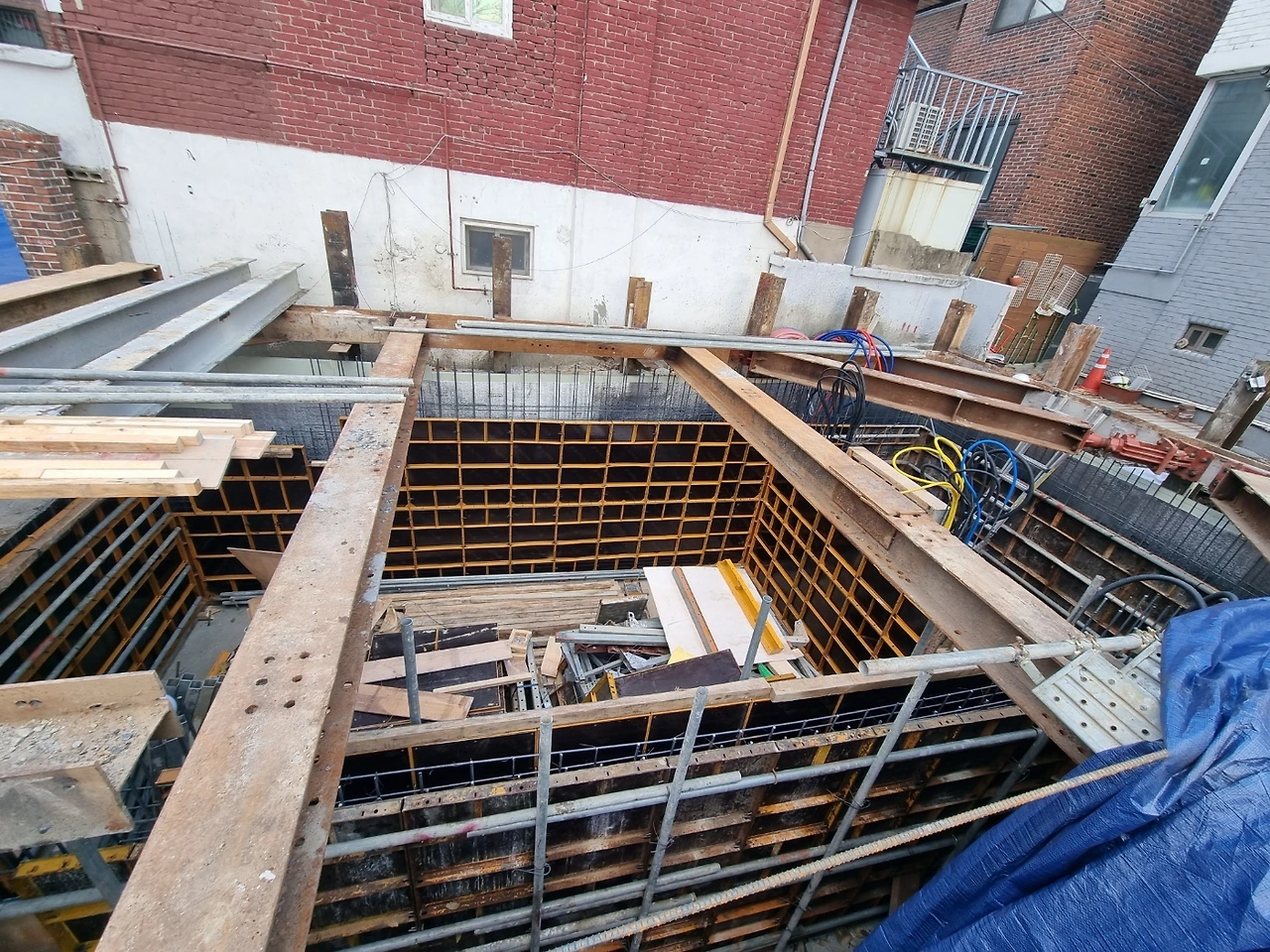 1. 지하층 가설재 반입 및 유로폼 붙이기