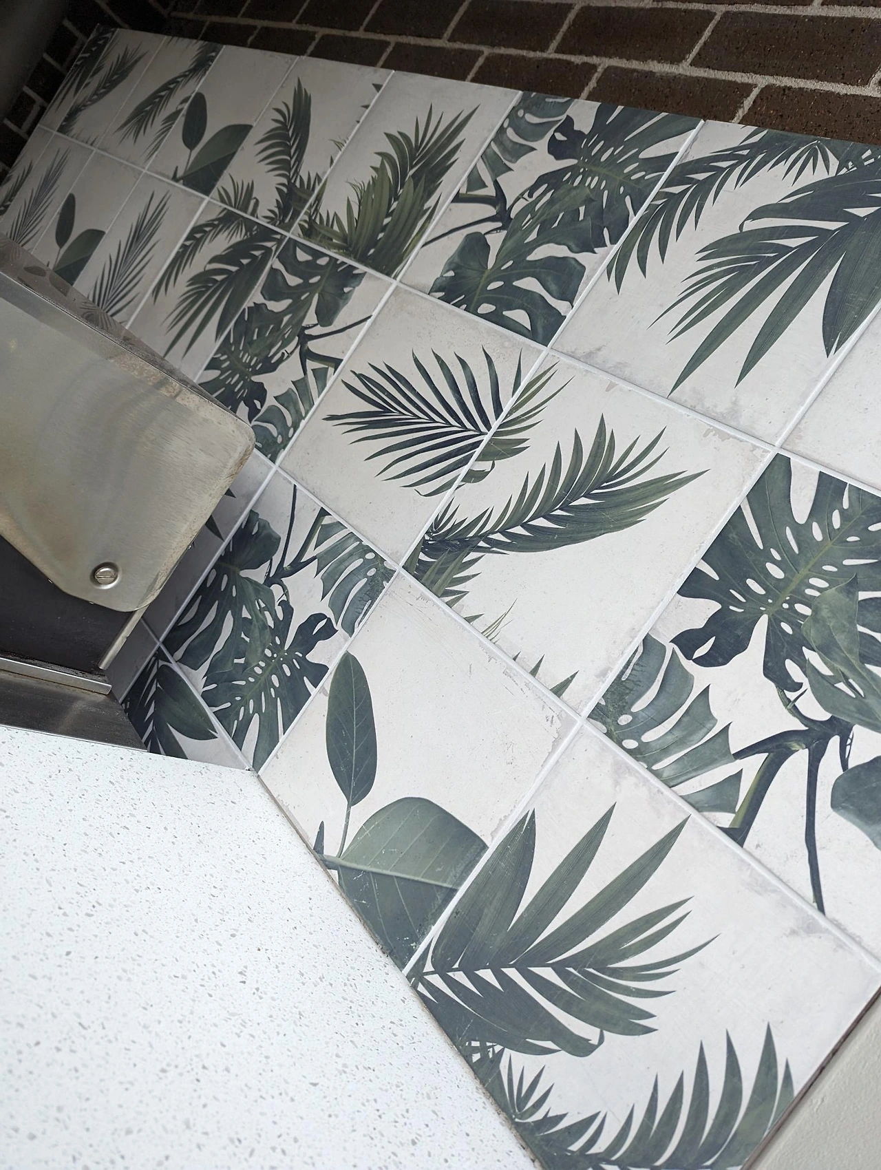 외곽에 있는 타일과 욕실 자재를 판매하는 amber 매장에 들러서 botanic pattern의 타일을 포인트로 구매해 보았다.