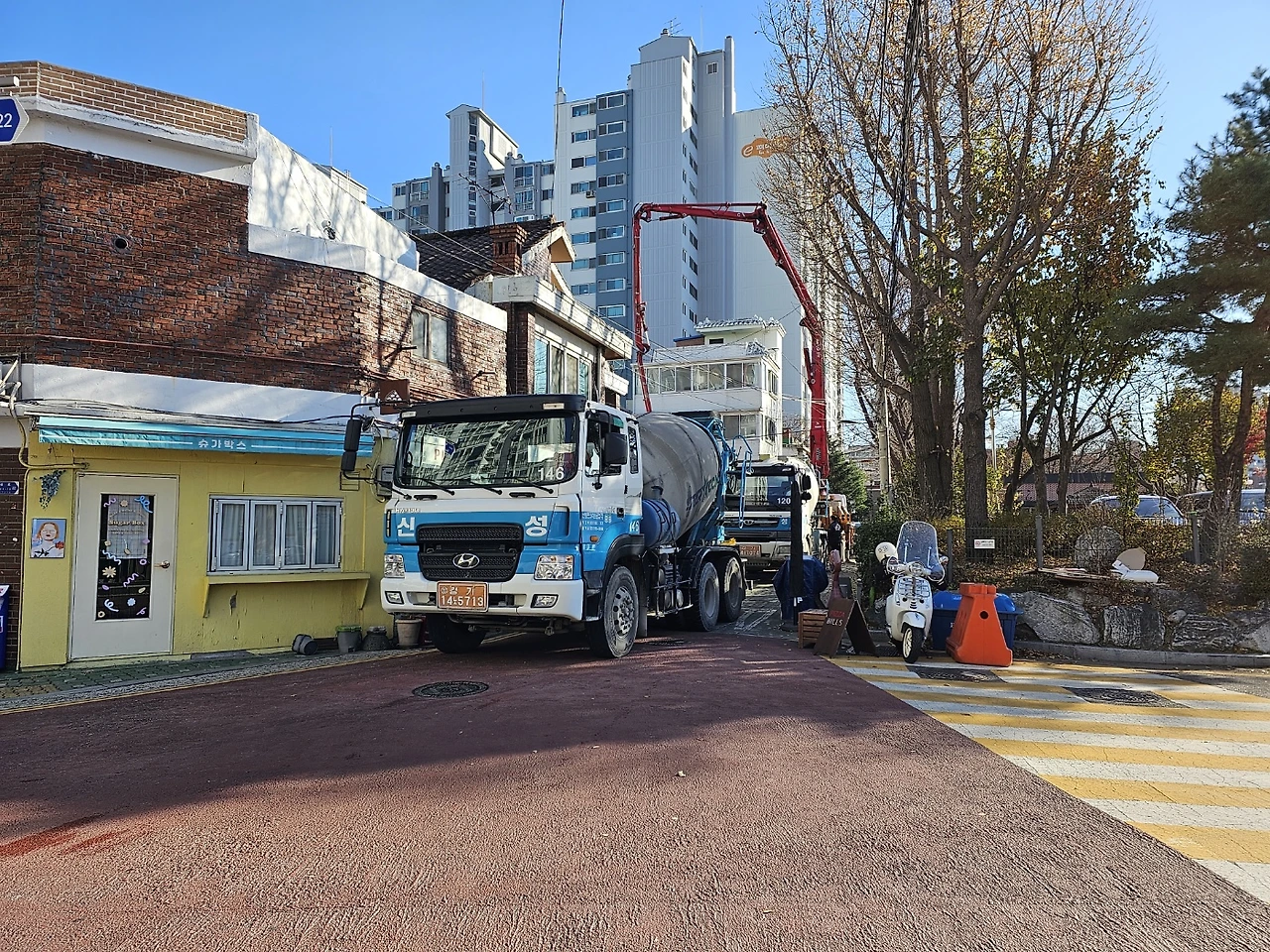 - 가설재 반입. 유로폼과 숄져 반입 및 설치 예정