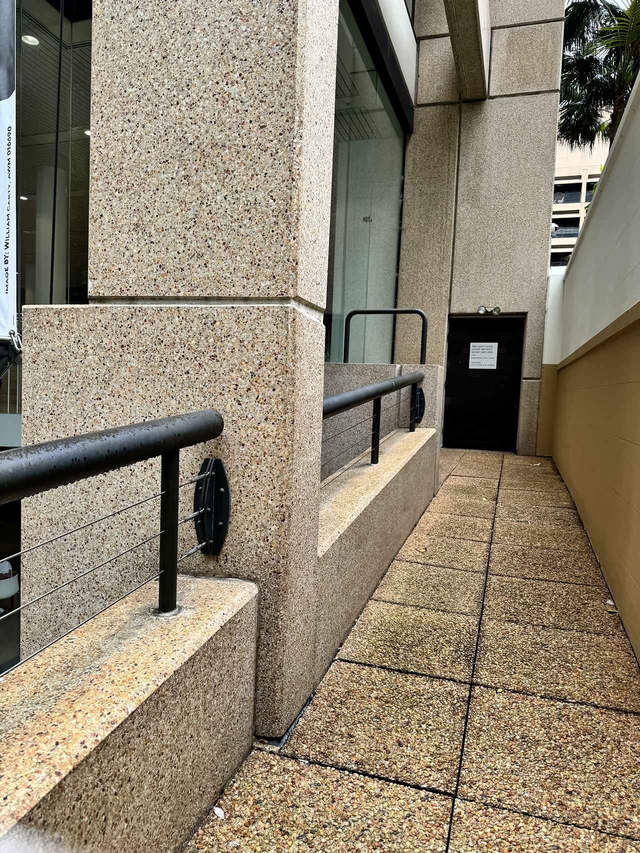 건물 정면 바닥에 위치한 오수, 수도 맨홀도 6개나 된다. 오수 맨홀 덮개 4개는 바닥재와 유사하게 처리하고, 수도맨홀은 지정된 것을 사용해야 하므로 벗겨지더라도 페인트 칠 등 바닥과 이질감이 없는 방향으로 가기로 하였다.