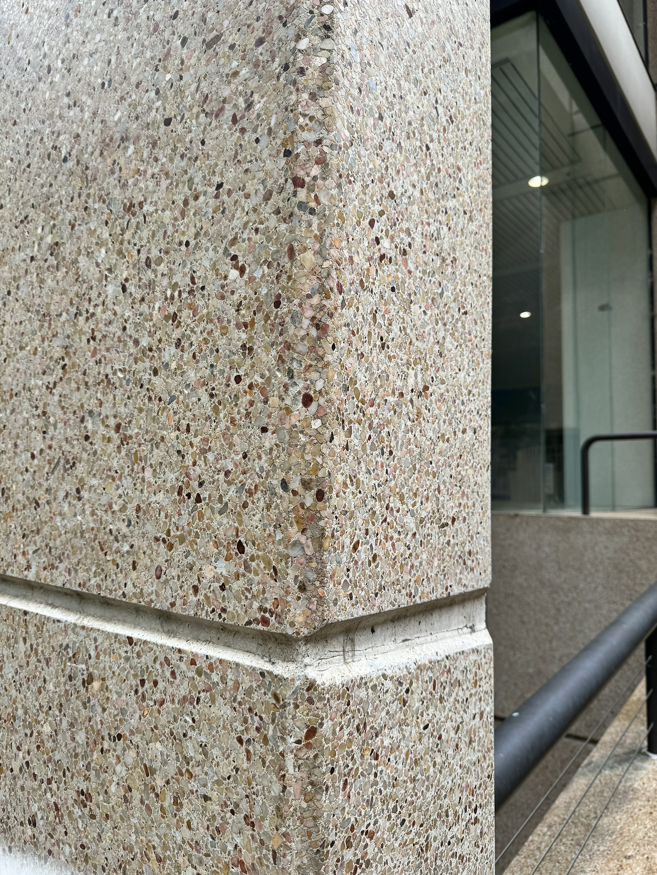 여행지에서 본 시드니 라이브러리 신관의 종석미장 사진을 조소장님에게 보여드리니 자갈조색에 대해 고민을 해보겠다고 하신다.