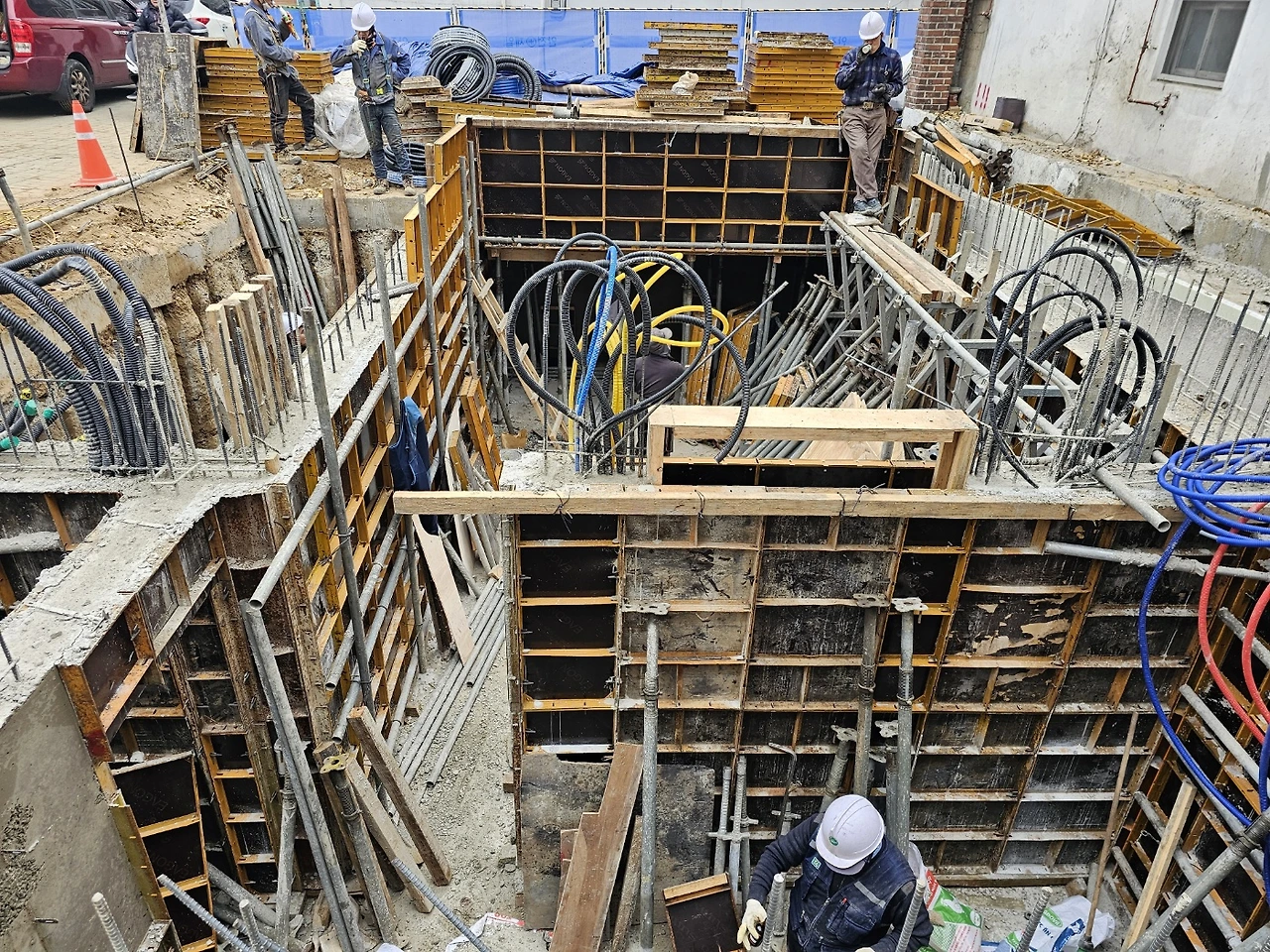 1. 골조공사. 지하층 형틀목공÷철근공.