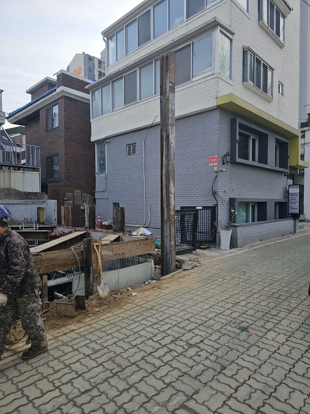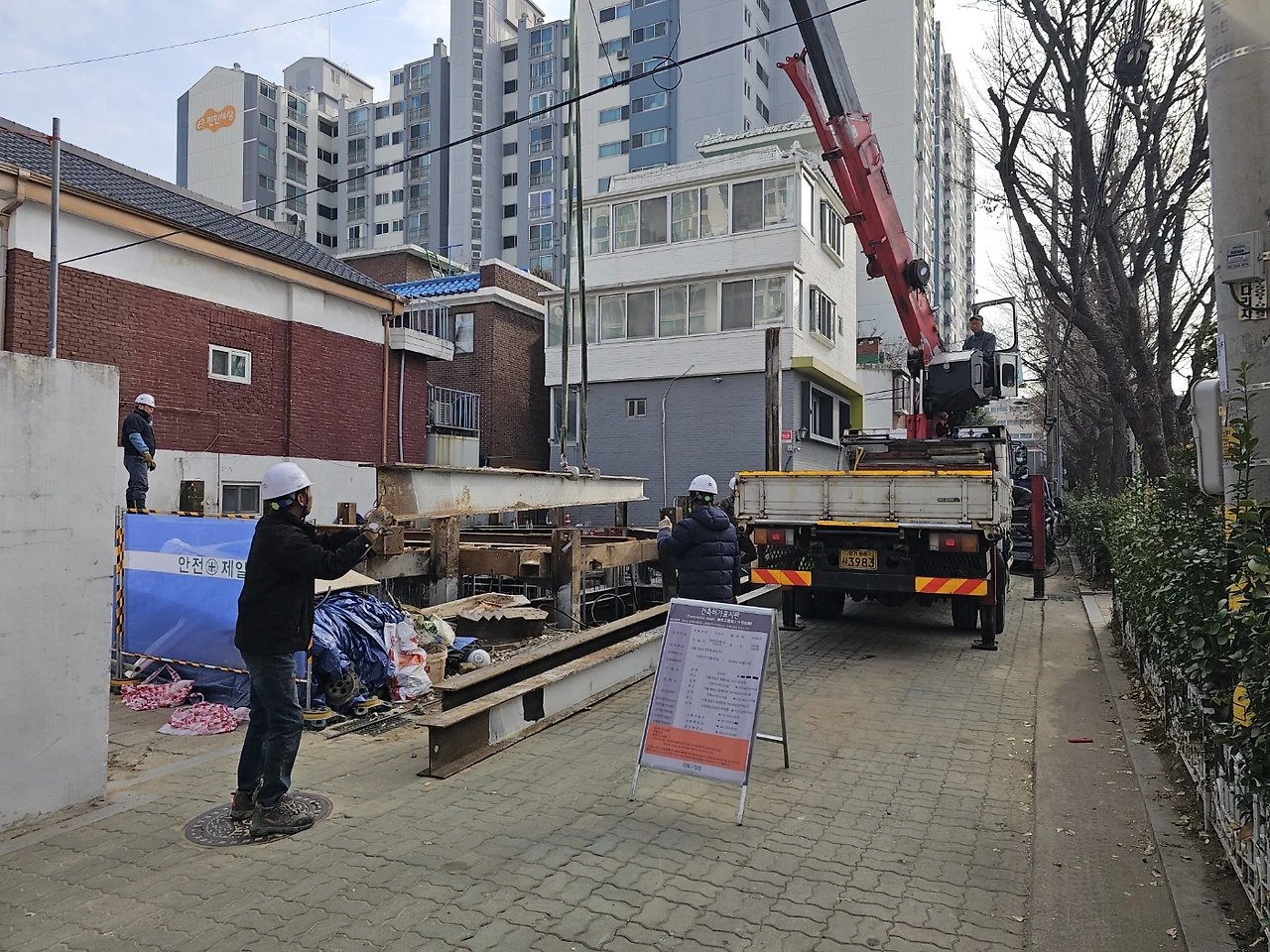 덮여있던 공간을 열고 H빔 등 가설재가 제거되었다. 콘크리트 타설하는 데 쓴 형틀이 내일 제거되면 벽체가 드러날 거라 기대가 된다.