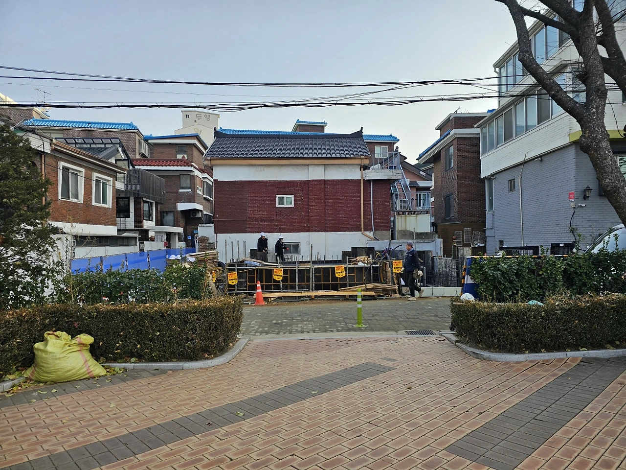 날씨마저 돕는 현장은 별다른 이슈없이 진행되고 있다. 여행 다녀온 얘기를 좀 나누고 전기분전반 위치에 대해 논의했다. 상업공간을 고려하여 분전반의 위치가 큰 사이즈로 변동되었다.(600 x 1400) 작은 공간이라 그렇게 쓸까 싶어서 잠깐 고민했으나, 벽체를 고정하고 나면 혹시라도 필요할 때 큰 공사가 될 수 있어 수용했다. 건물 진입구 내벽에 분전반. 통신반 등 여러 개의 함이 위치하개 되므로, 전기분전반은 외부에 두기로 결정하고, 외벽, 내벽 모두 종석미장이 되므로 가능한 이질감이 생기지 않는 방안을 요청하였다.(종석미장을 함 위에 입히는 등) 전기분전반 위치를 변경하면서 1층 정면의 외부 센서등도 서측 벽으로 이동.