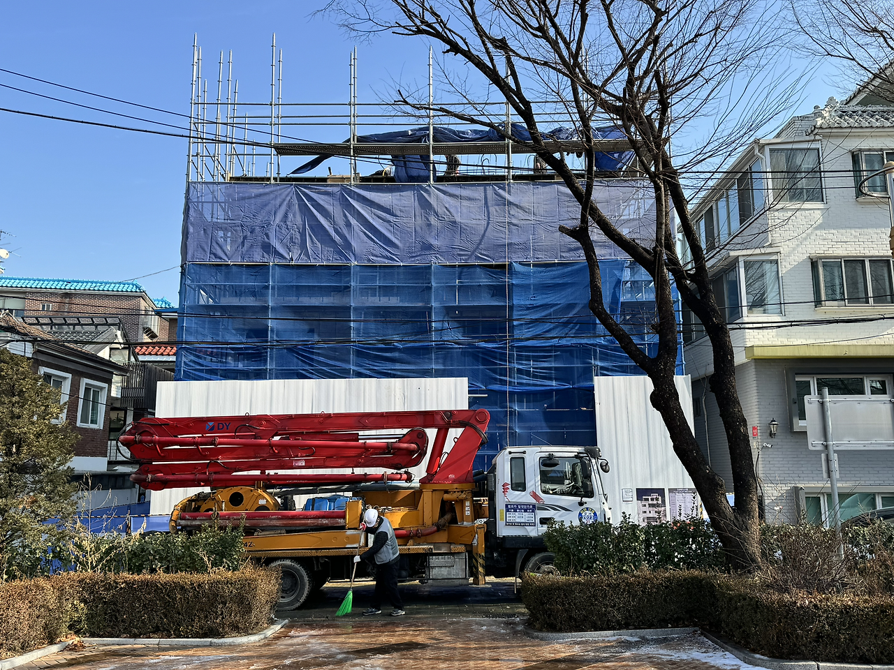 추위가 가시지 않고 여전히 쌀쌀하다. 다행히 3층과 4층 바닥 타설이 예정된 수요일쯤엔 기온이 좀 오를 예정이라고 한다. 매일 이렇게 온도까지 예민하게 날씨를 챙기는 게 우습기도 한데, 지구가 도운 것인지 운이 좋은 것인지 올 겨울은 삼한사온이 아니라 일주일씩 온화한 날이 지속되면서 큰 덕을 봤다.
