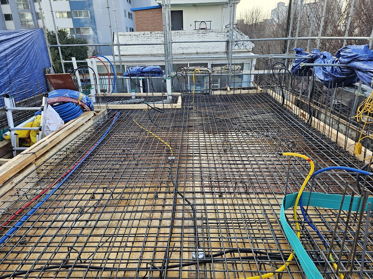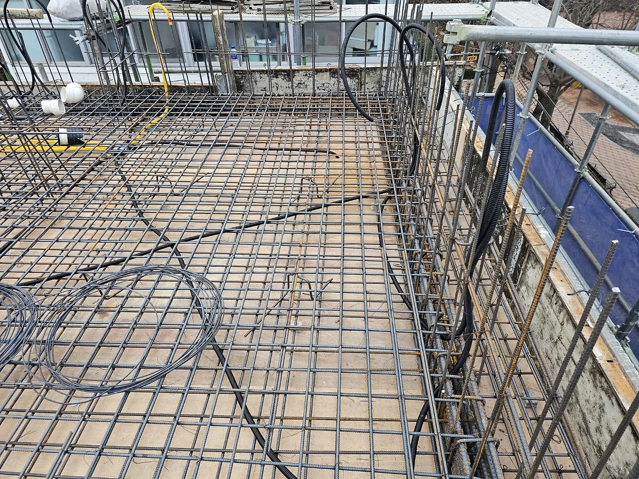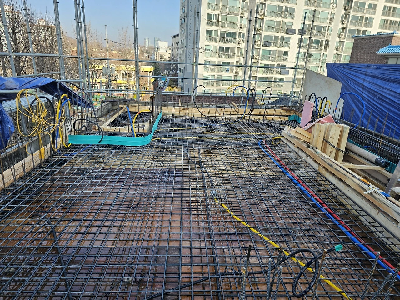 4층쯤 되니 바닥 타설을 위해 바닥 배근과 전기 등 배관작업 진행이 집을 처음 짓는 건축주에게도 익숙한 순서가 되었다.